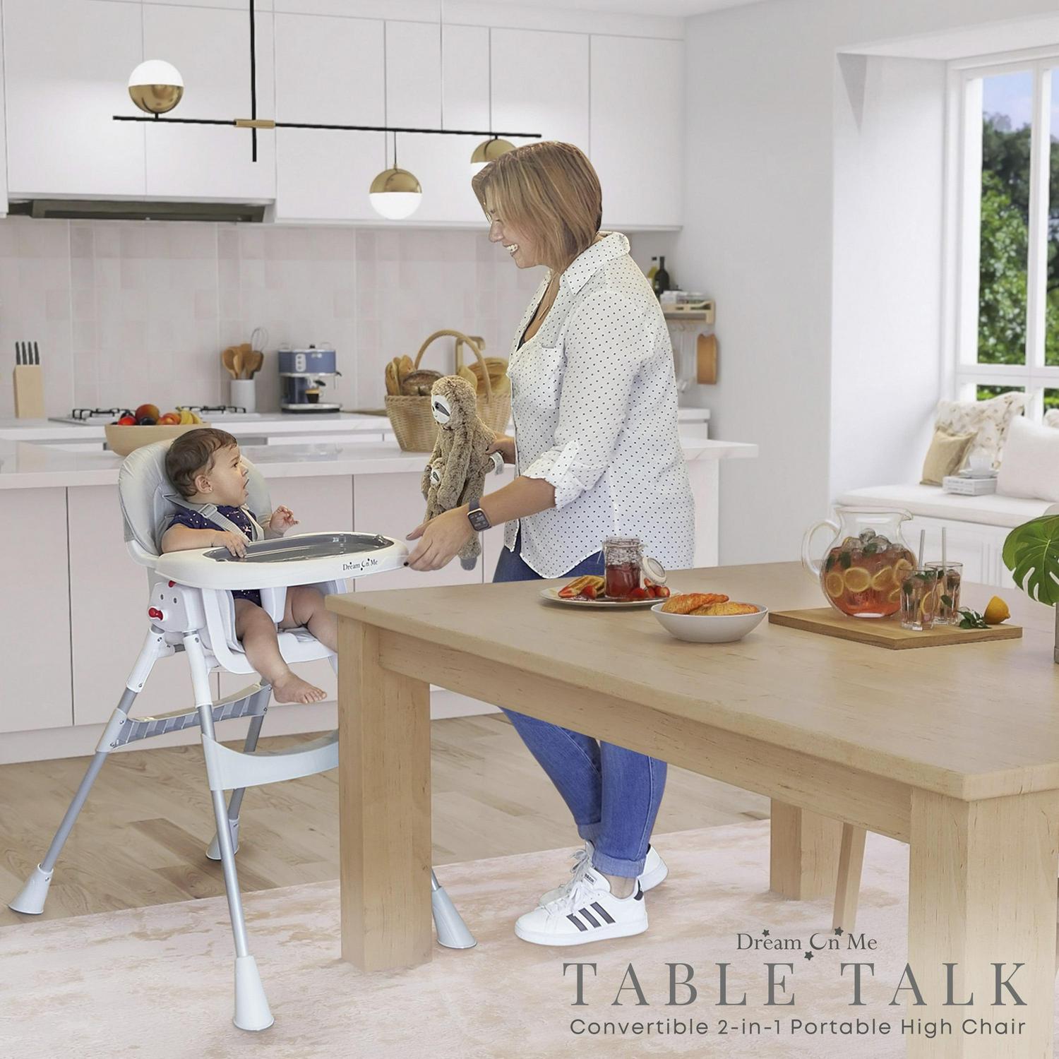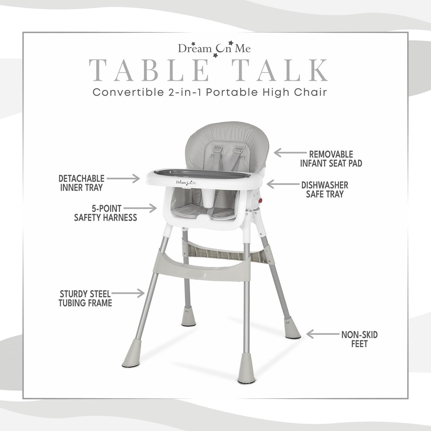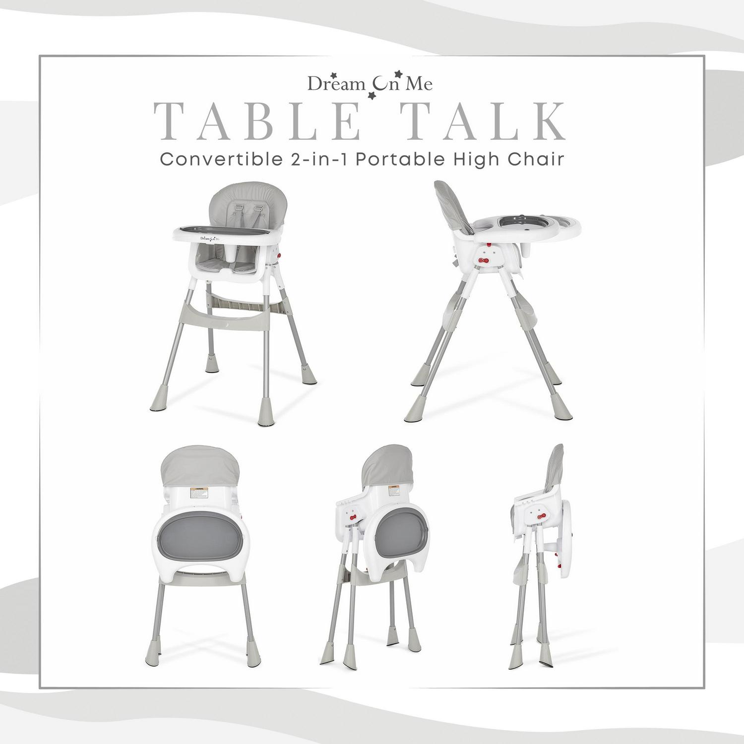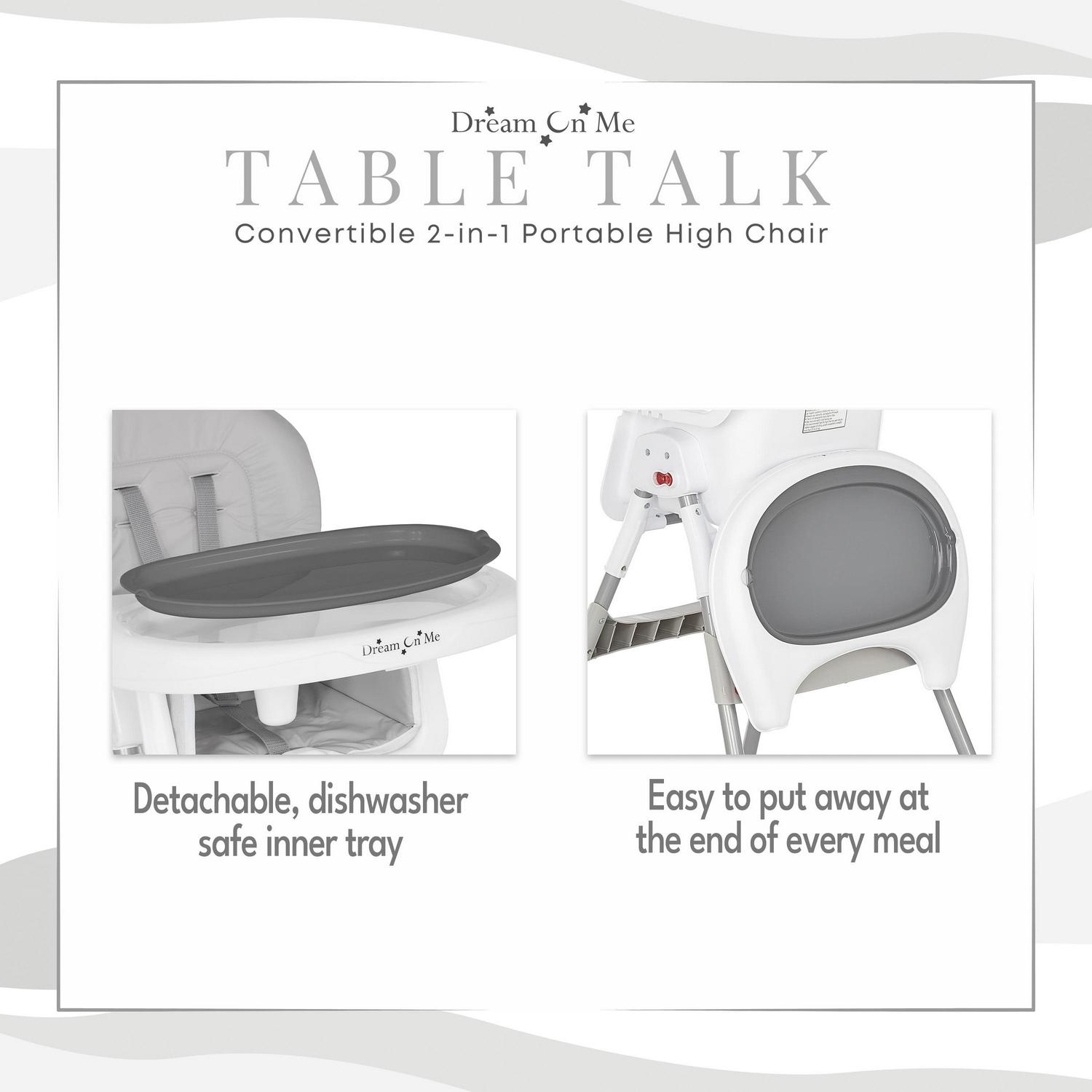 Dream On Me Portable 2-In-1 Table Talk High Chair, Gray