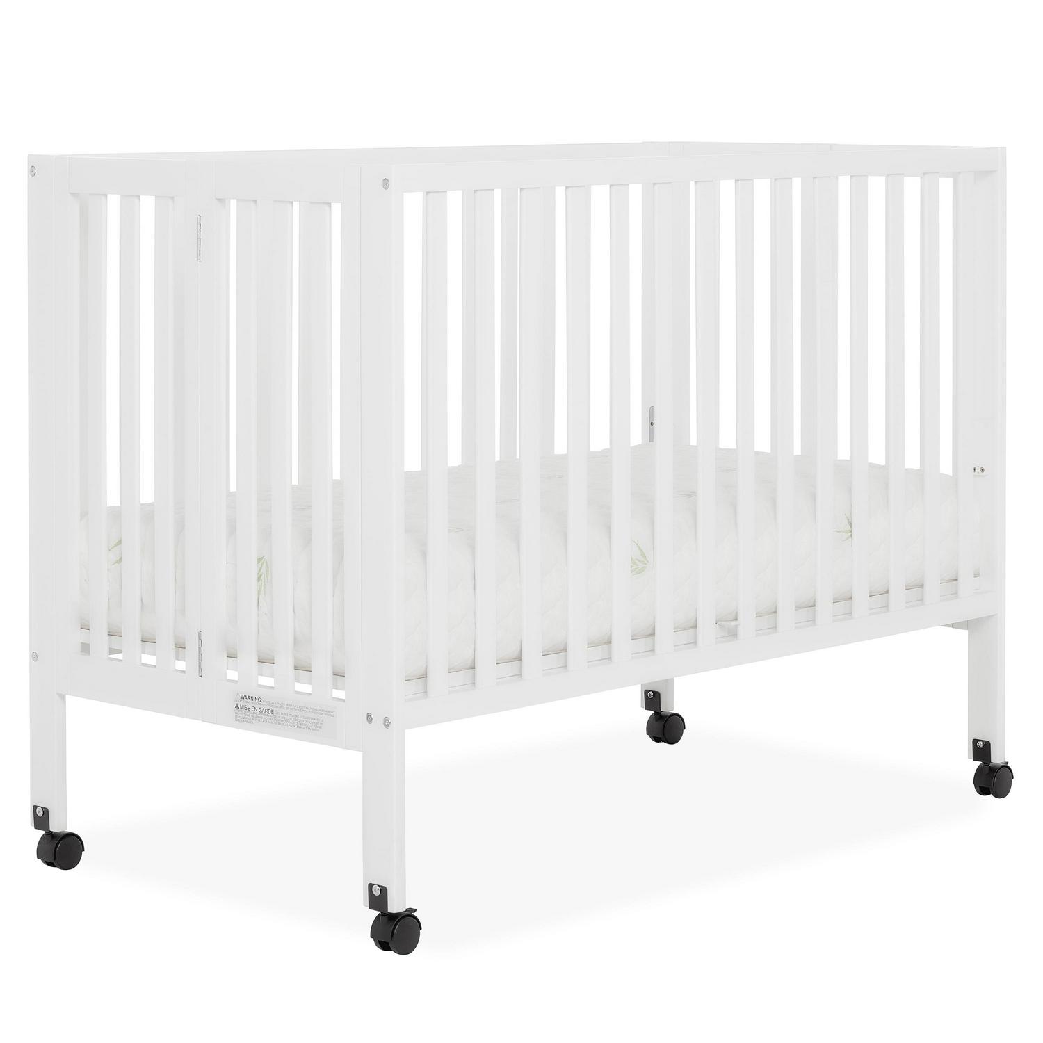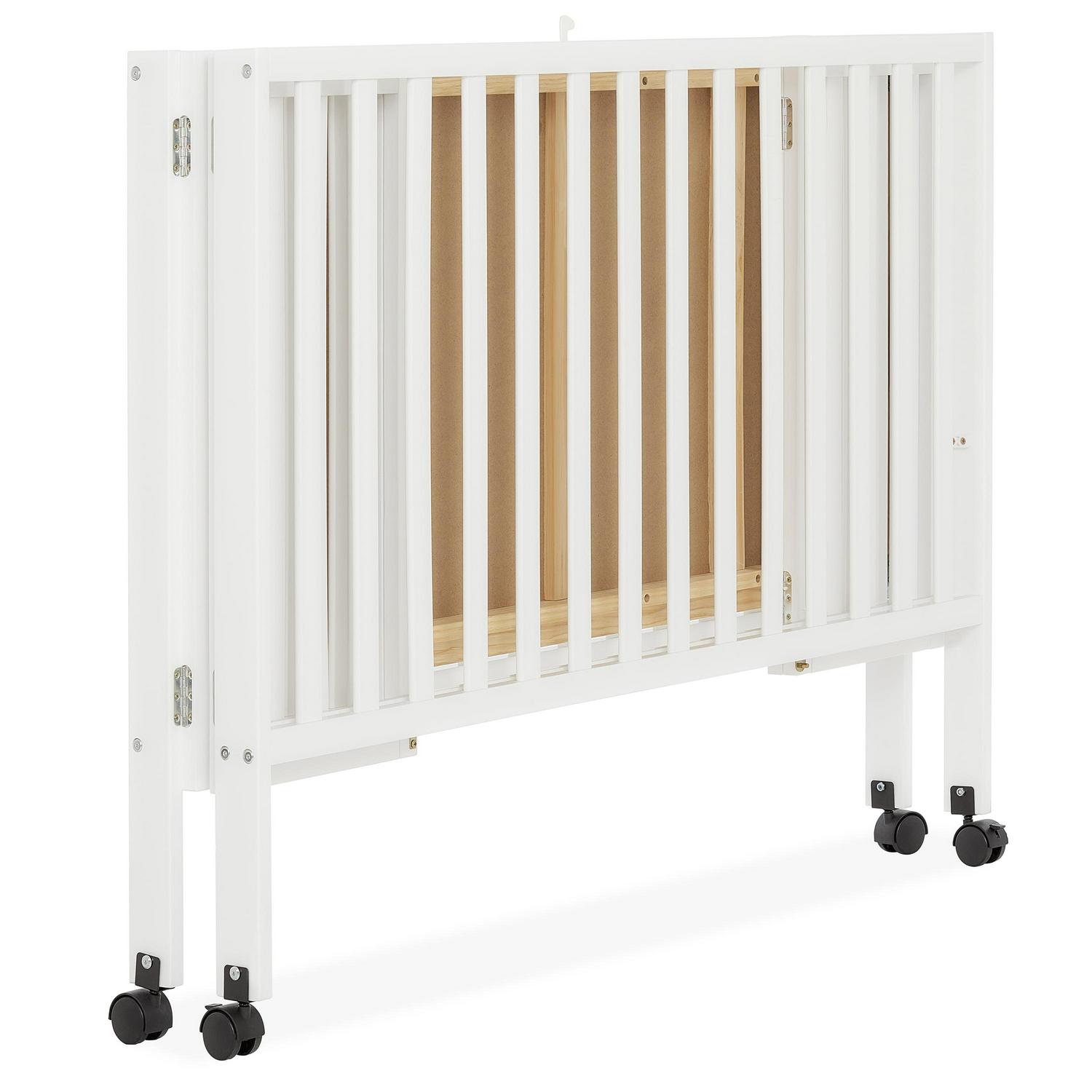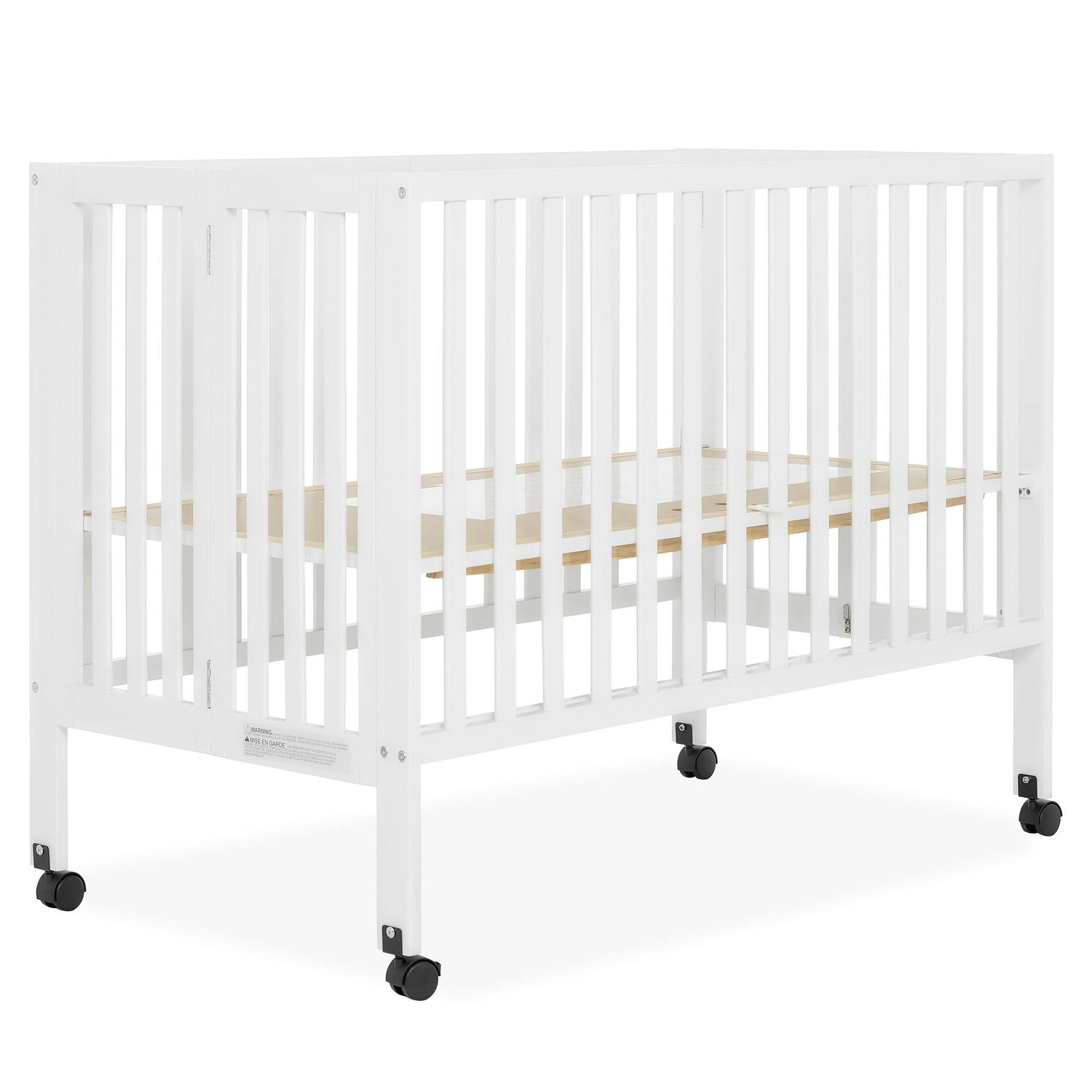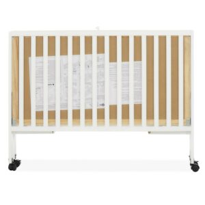 The Dream On Me Quinn full-size folding crib combines sleek lines with contemporary style to match any nursery décor. This folding crib is a must-have for small spaces; it features three-position adjustment mattress support, built with patent functional folding mechanism that is designed to simply fold flat when more storage needed. This crib is ready to use again by simply unfolding and locking into place, its rolling feet allows for easy movement throughout your home making it perfect for guests with babies, grandparents, caregivers, daycare. The Dream On Me Quinn is crafted from sturdy New Zealand pinewood, it s a durable and versatile addition to any modern nursery. All Dream On Me cribs is JPMA certified and meet all applicable ASTM and CPSC standards. Third-party labs for lead and other toxic elements to meet or exceed CPSC and ASTM safety standards test all of our products.