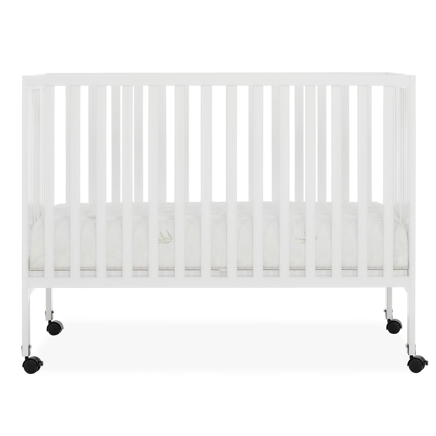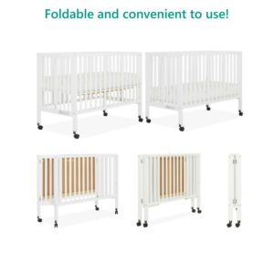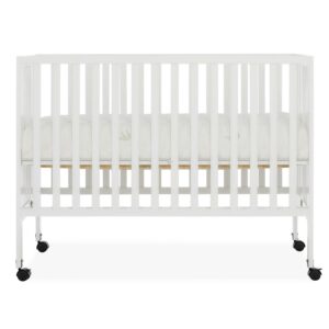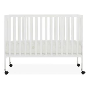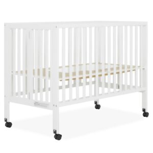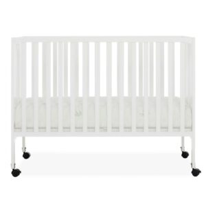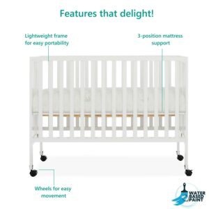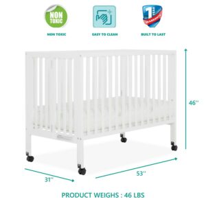 Dream On Me Quinn Full-Size Folding Crib, Removable Wheels, Modern Nursey, Adjustable Mattress Support, Patent Folding System in White