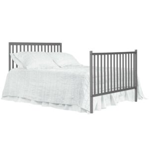 The Dream On Me Synergy 5-in-1 Convertible Crib is the perfect blend of style and substance, bringing together contemporary design with abundant features and a focus on safety. This gender-neutral crib grows with your child! It converts from a crib to a toddler bed, toddler bed rail is sold separately) a daybed and full-size bed (full-size bed frame and mattress not included). It also comes with a 3-position adjustable mattress support system. Safety and durability are never a concern with the Synergy Convertible Crib. It is built to last, made out of solid reclaimed New Zealand pinewood. All Dream On Me cribs are JPMA certified and meet all applicable ASTM and CPSC standards. All of our products are tested by third-party labs for lead and other toxic elements to meet or exceed CPSC and ASTM safety standards. The Synergy comes in beautiful, non-toxic finishes that allow you to create the nursery of your dreams – contemporary, whimsical, fairy, vintage – let your imagination reign supreme! This is a standard full-size crib and measures 53.0″ L x 29.0″ W x 39.0″ H inches. For the best fit, we recommend any Dream On Me or Evolur full-size, non-toxic, Greenguard-certified mattress.