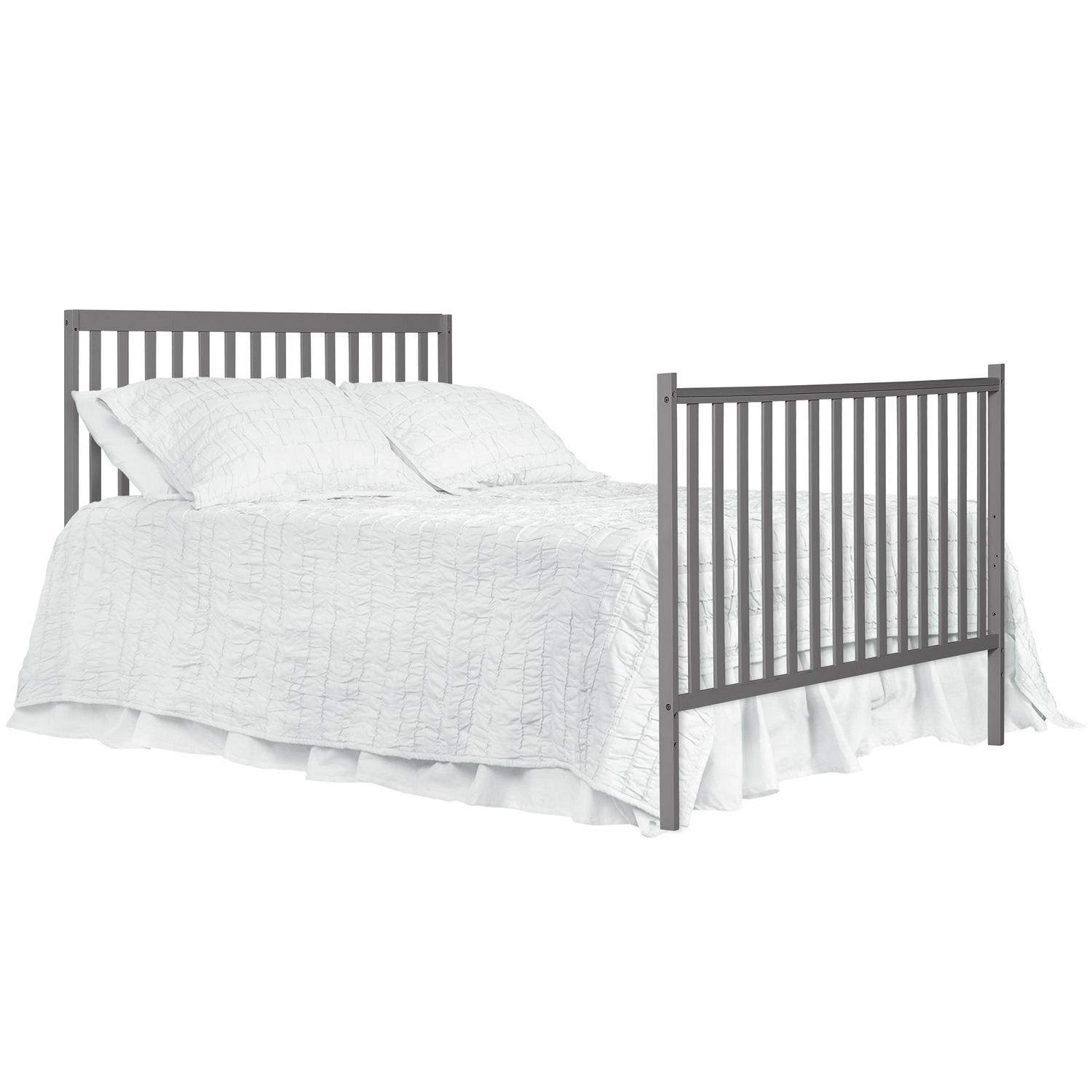 – Crib converts into a toddler bed, a daybed and full size bed. Toddler Guardrail and Full Size Rail each sold separately. Bed frame and Mattress not included.