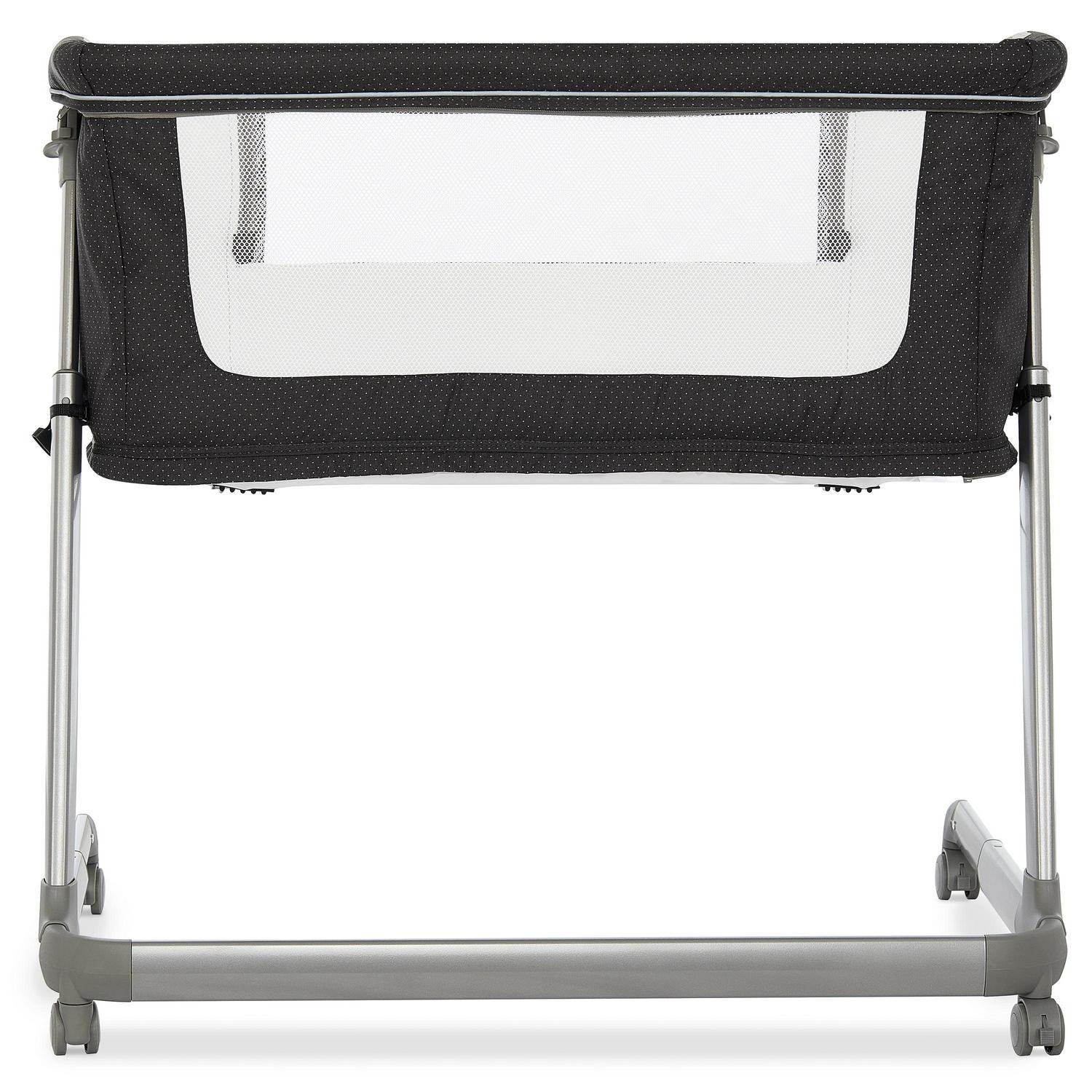 In a world where we can be anything, be cozy and keep your little one calm with Dream On Me Waves bassinet, bedside sleeper, and Play yard. This ASTM-approved bassinet, bedside sleeper, and play yard combo grows with your baby and ensures safety easily securing tightly to your bed frame with a sturdy strap system. The adjustable height mechanism accommodates all types of beds leaving no gaps and making an ideal solution for sleeping closer to you! It’s perfect for breastfeeding and offering reassurance to your baby during those restless nights without even getting out of your bed. Waves mesh sides provide a clear view of your newborn while providing breathability. Besides a bedside sleeper, it can be used as a portable bassinet making it ideal for small spaces. Convert into Play yard easily by unzipping the mattress support. New AAP guidelines say that babies should sleep in their parents’ rooms for the first year of their life, and this Bassinet, bedside sleeper, and play yard combo by Dream On Me makes it easy to keep little ones close by. It’s the ultimate solution, a space-saver without sacrificing safety and design. This product is recommended for babies up to 25 lbs. or 6 months of age, or whenever your baby begins to show signs of pushing up to hands and knees. This bassinet has a flat surface without any incline.
