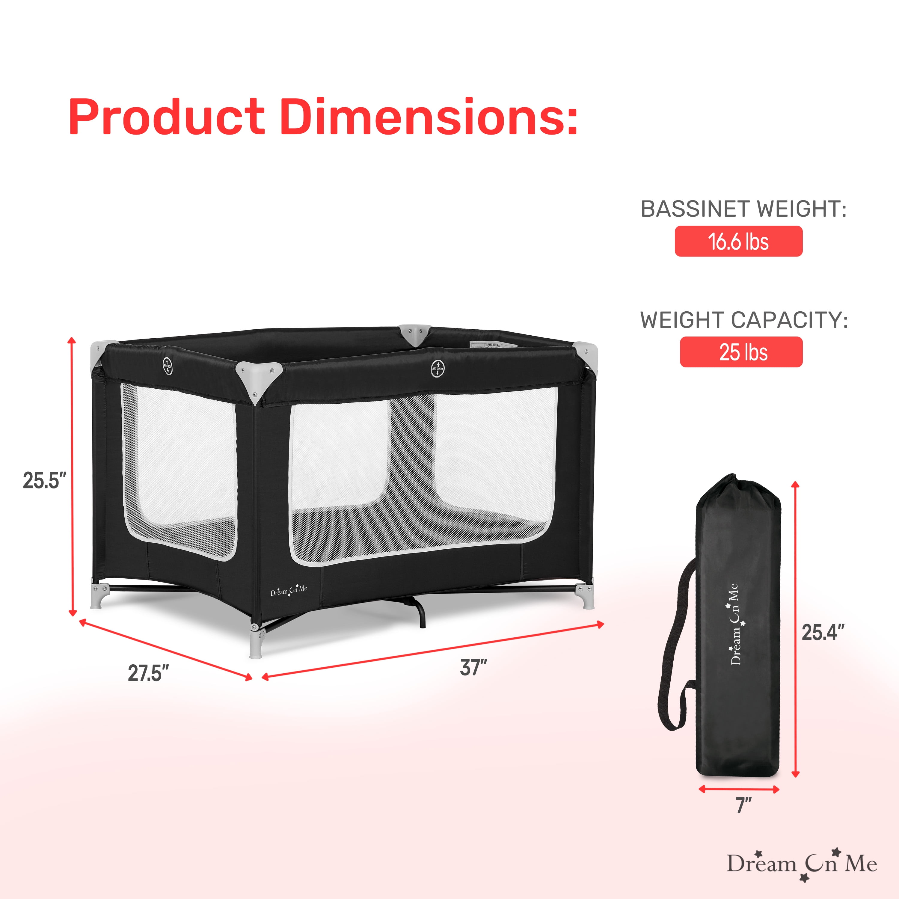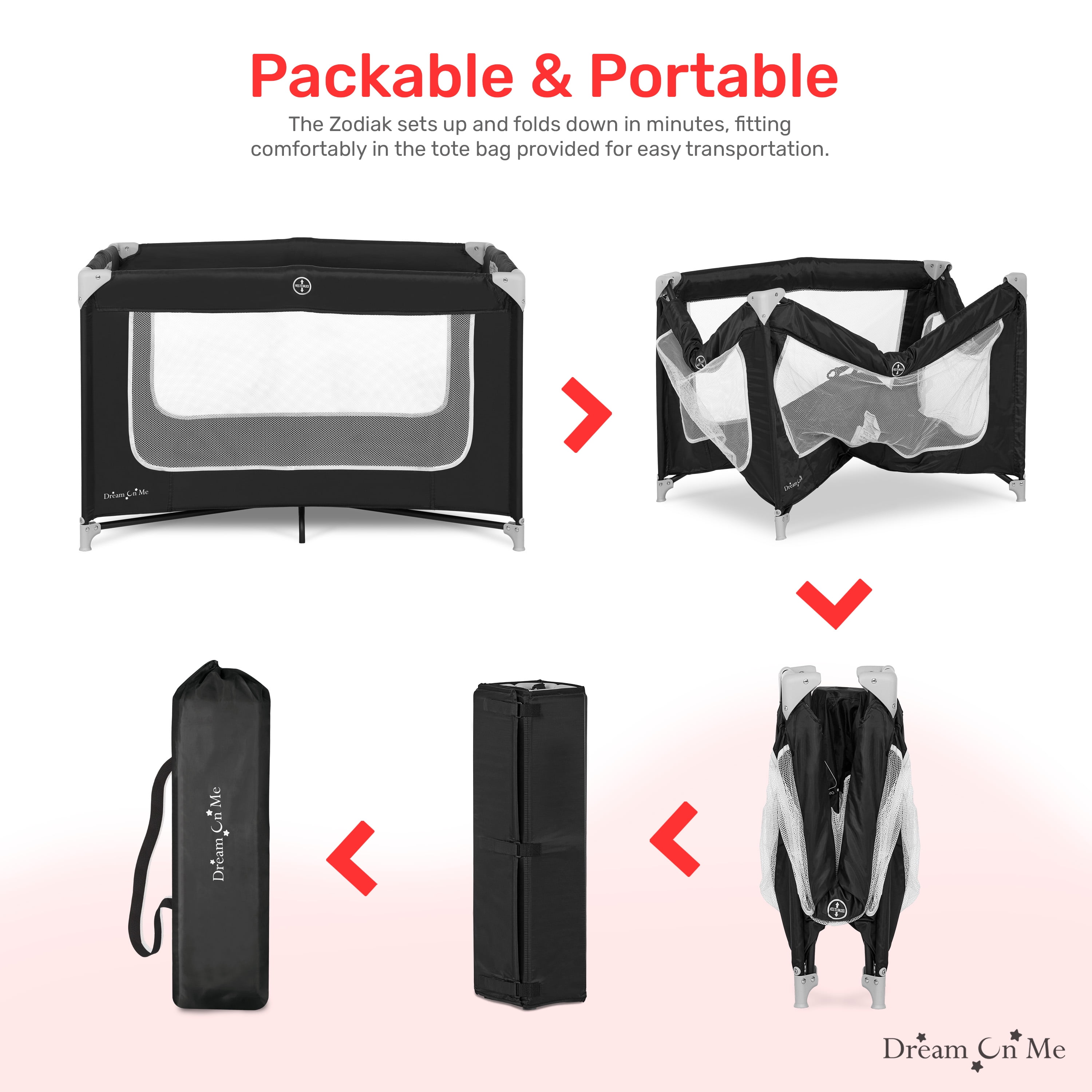 Dream On Me Zodiak Portable Playard with Carry Bag & Shoulder Strap, Black