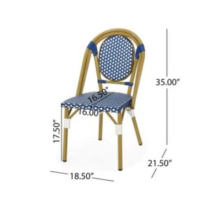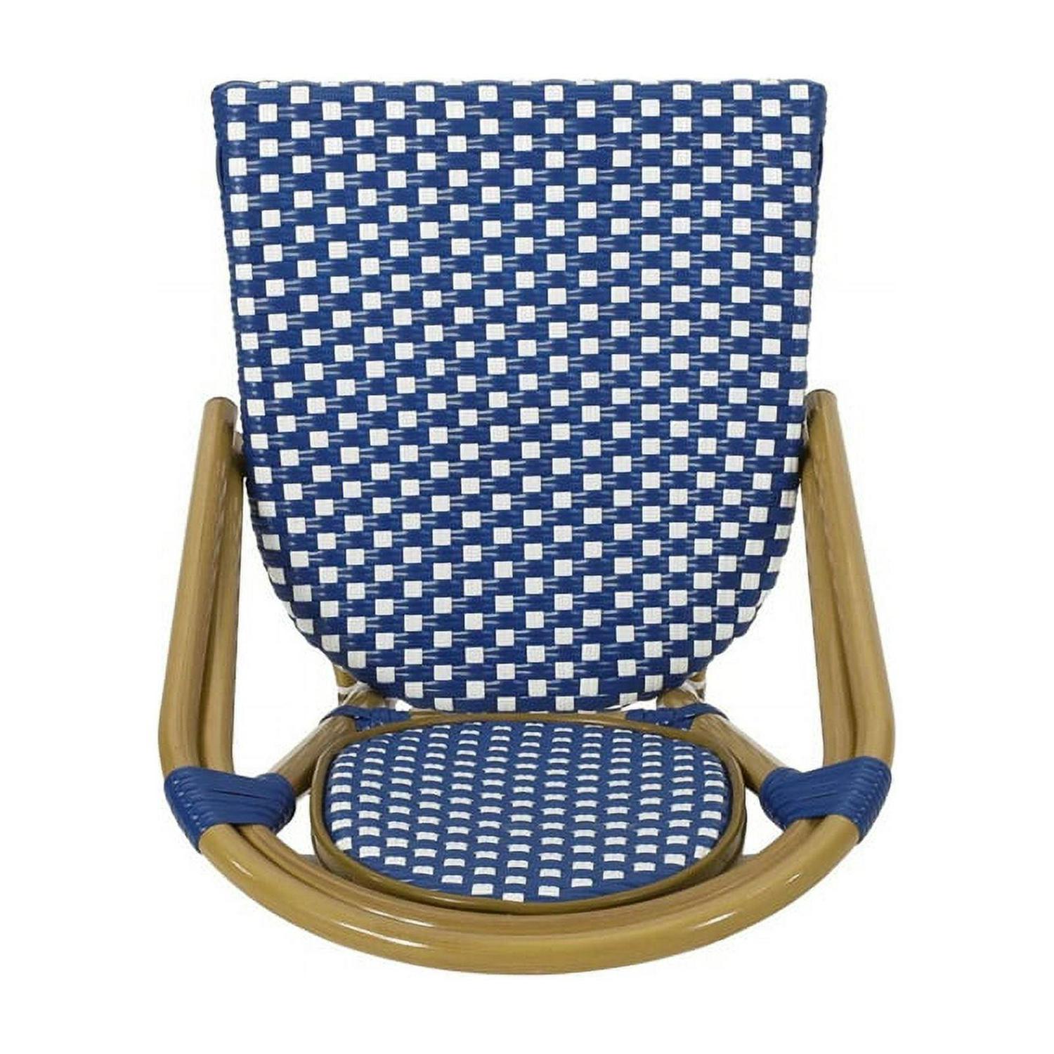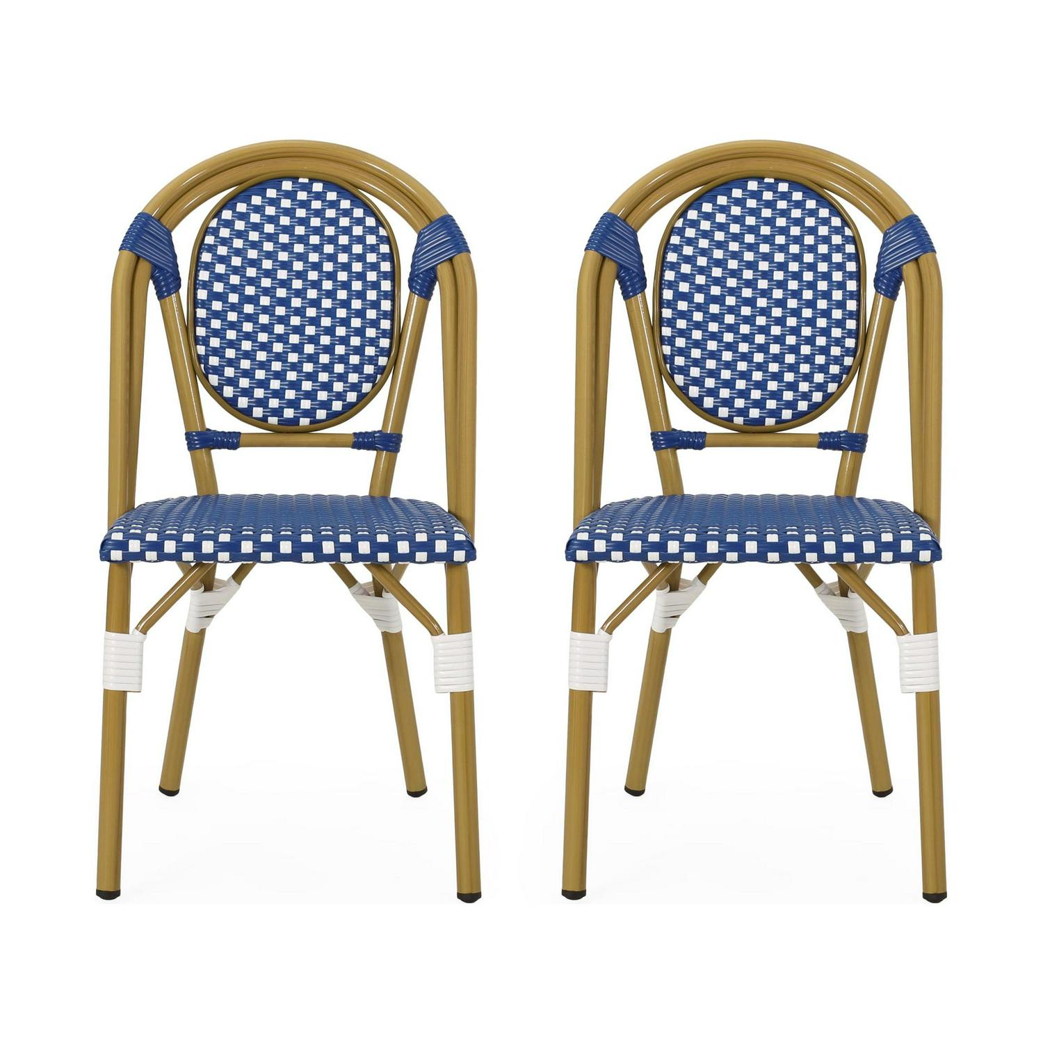 Drew Outdoor French Bistro Chairs, Set of 2, Blue, White, Bamboo Finish