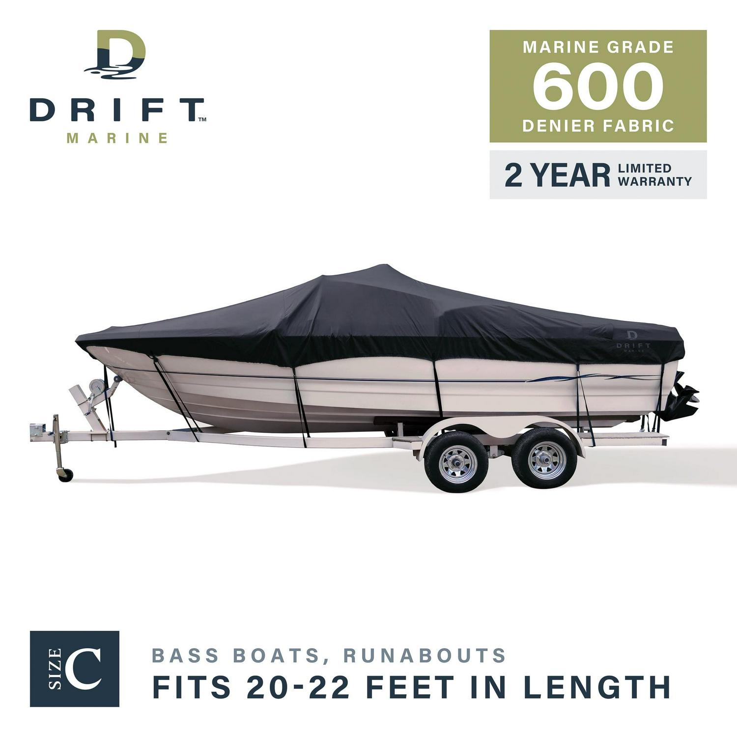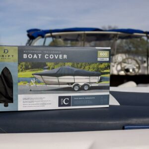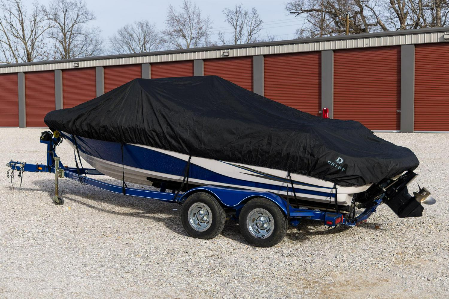 DRIFT 600D Waterproof Trailerable Boat Cover Style C, 20′-22′, 100 Beam, Anti-UV, Black