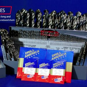 Drill America cobalt drill bits are manufactured to National Aerospace standard 907. These drill bits display high red hardness, permitting speeds up to 30% greater, and are especially effective in drilling tough, high tensile strength materials like stainless steel, inconel, and titanium. The 135 split point is self-centering and reduces thrust. The Drill America D/A29J-CO-PC Drill Set comes in a unique round drill index that combines form and function into 1 beautifully designed, easy to carry drill set. The shatter proof, water resistant case fits easily, anywhere you need it. Effortlessly grip the set in 1 hand as you would a travel coffee mug, leave it in the cup holder of your truck while on the way to your job or hang it on your belt when all hands are on deck. Sizes included in the set: 1/16 in., 5/64 in., 3/32 in., 7/64 in., 1/8 in., 9/64 in., 5/32 in., 11/64 in., 3/16 in., 13/64 in., 7/32 in., 15/64 in., 1/4 in., 17/64 in., 9/32 in., 19/64 in., 5/16 in., 21/64 in., 11/32 in., 23/64 in., 3/8 in., 25/64 in., 13/32 in., 27/64 in., 7/16 in., 29/64 in., 15/32 in., 31/64 in. and 1/2 in. Drills are all jobber (standard) length.