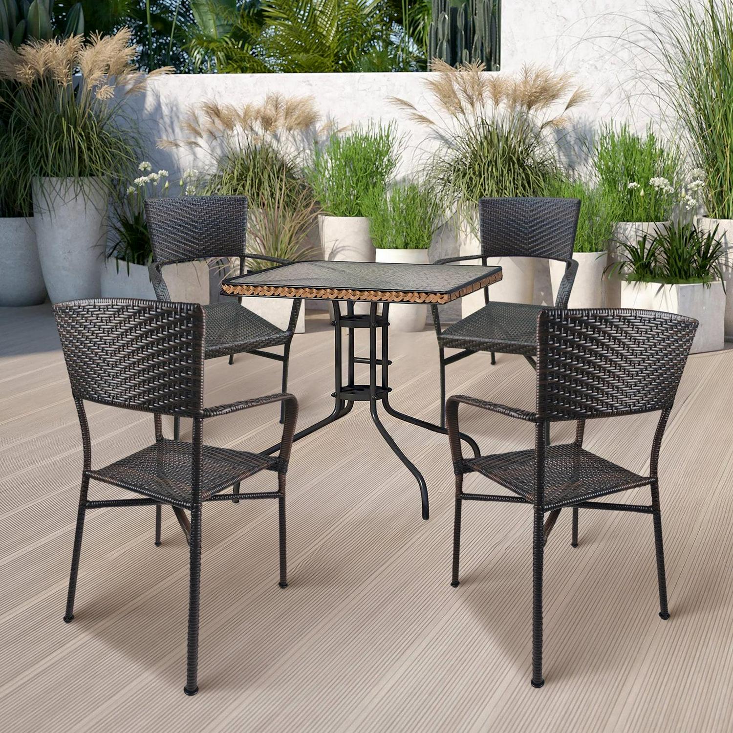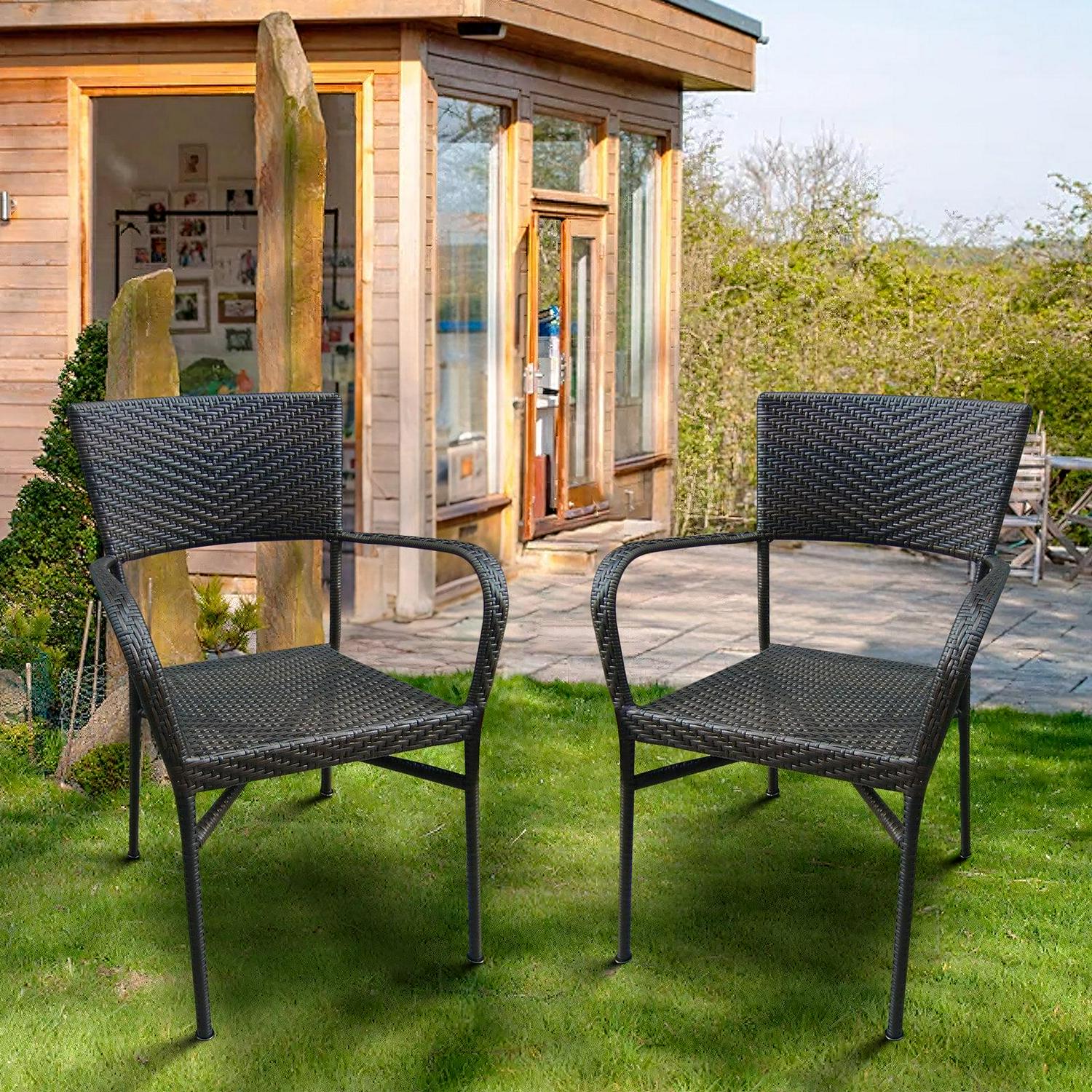 Dubbin Outdoor Wicker Chairs Rattan Bar Stool Wicker Chairs, Patio Bar Height Chair with Arms