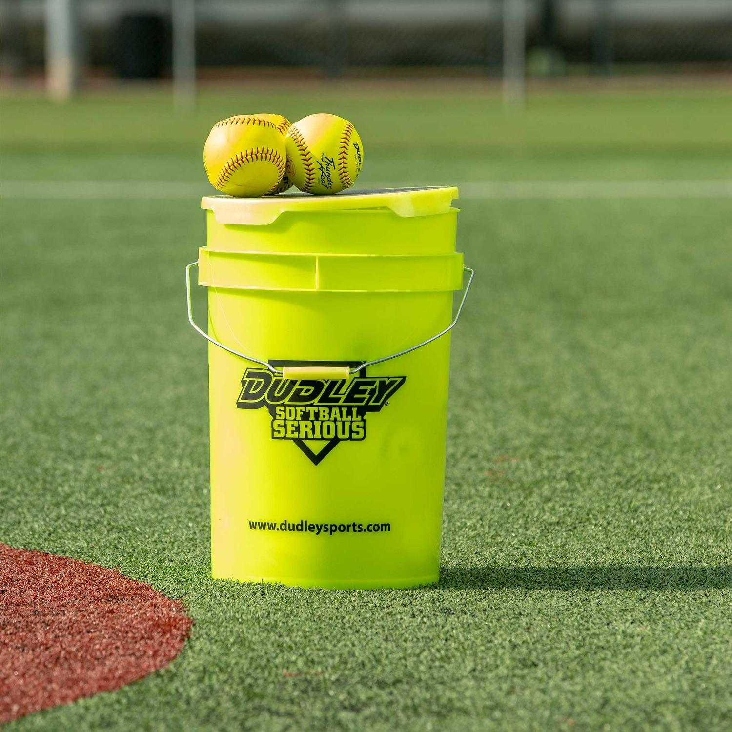 Every softball team needs a bucket, and every softball player needs balls. We have combined the two! Twelve Thunder Heat game balls inside a Dudley softball bucket with a padded lid, so all a player’s needs are met in one!