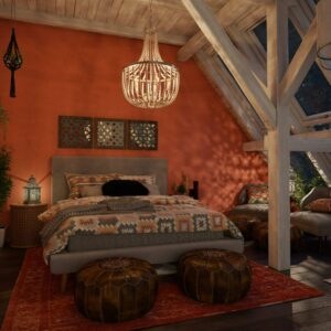 – Rustic dining room: wooden beads provide a rustic element to the otherwise contemporary color scheme, perfect for hanging above your industrial modern dining room table for a soft, organic touch.