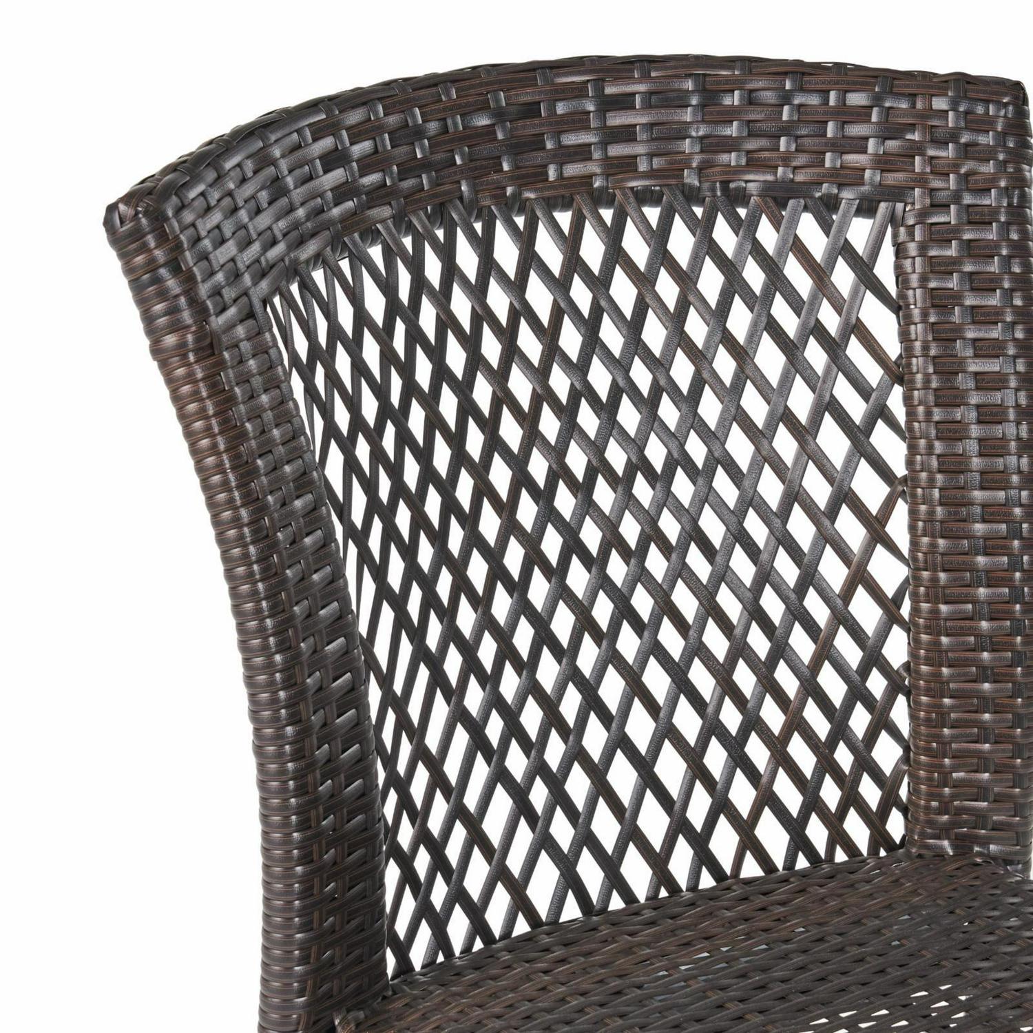 Beautiful wicker in a variety of browns lend lasting beauty to the Dusk All-Weather Wicker Dining Chair – Set of 2. With a powder-coated iron frame and wicker that’s woven of a durable resin material, they’re made to last and can support strapping fellows. They’re weather-resistant and ideal for poolside use or on the deck, patio, balcony, or veranda. No assembly is required as they arrive ready for use. These chairs stack for convenient storage when not in use.