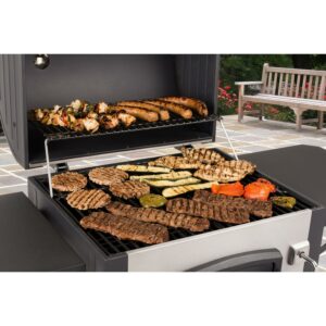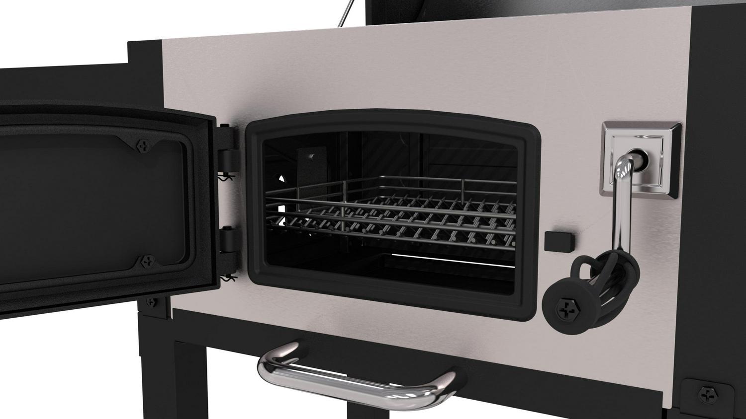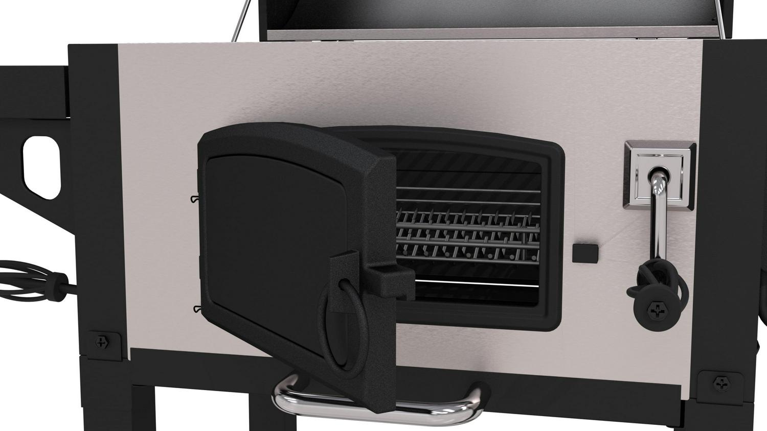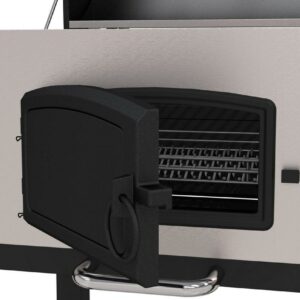 Cooking with charcoal is now stylish and functional with this stainless Dyna-Glo charcoal grill. Each cooking grate is made with porcelain enameled cast iron for maximum heat transfer and searing. Customize the cooking temperature by using the adjustment crank to raise and lower the charcoal tray. Reloading or stoking charcoal is made simple by opening the cast iron and steel access door on the front of the grill. The stainless smoke stack features an adjustable flue for additional temperature control. The lid and front firebox are double-walled to minimize heat loss and improve the burn efficiency of charcoal. The high capacity ash pan is removable for quick and easy clean-up.