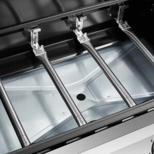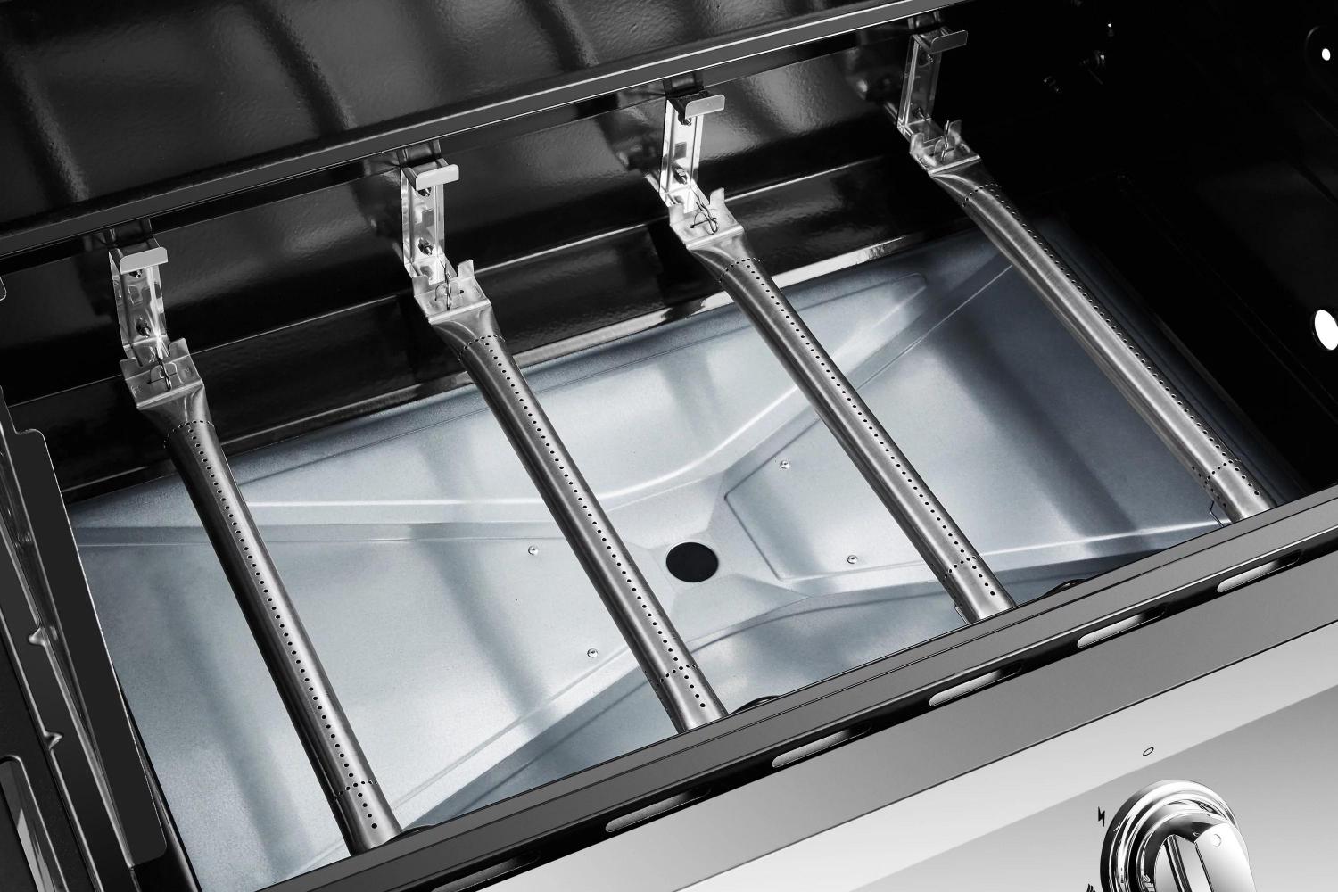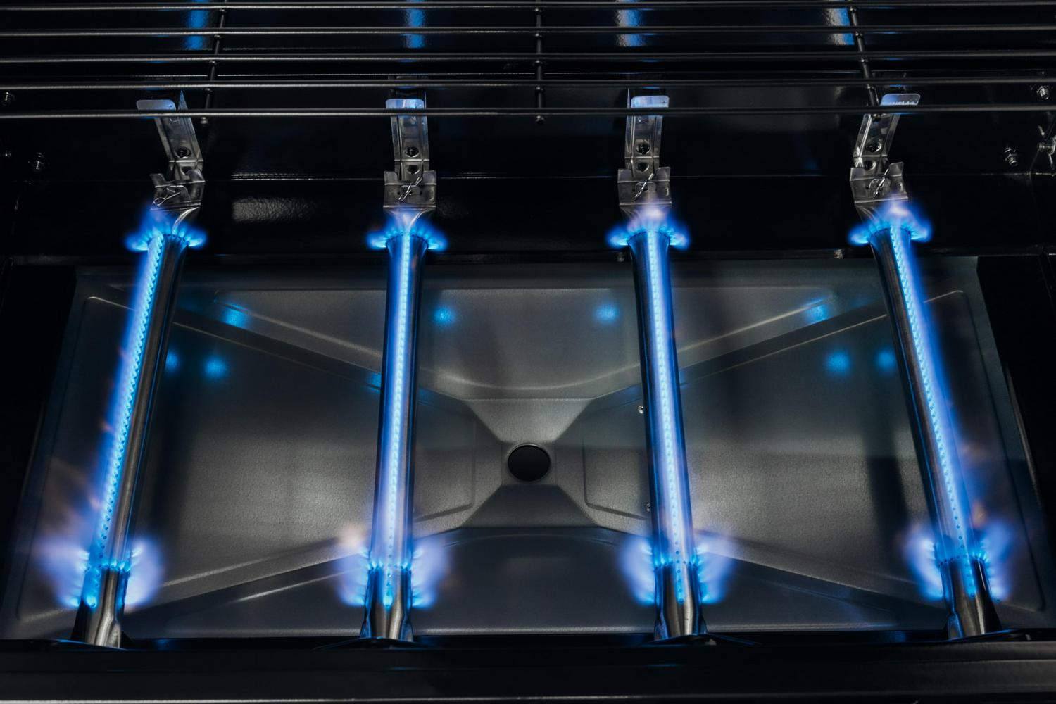 – EquiHeat technology powers even heat distribution with four primary stainless steel tube burners