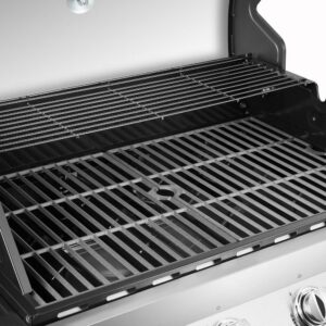 - EquiHeat technology powers even heat distribution with four primary stainless steel tube burners