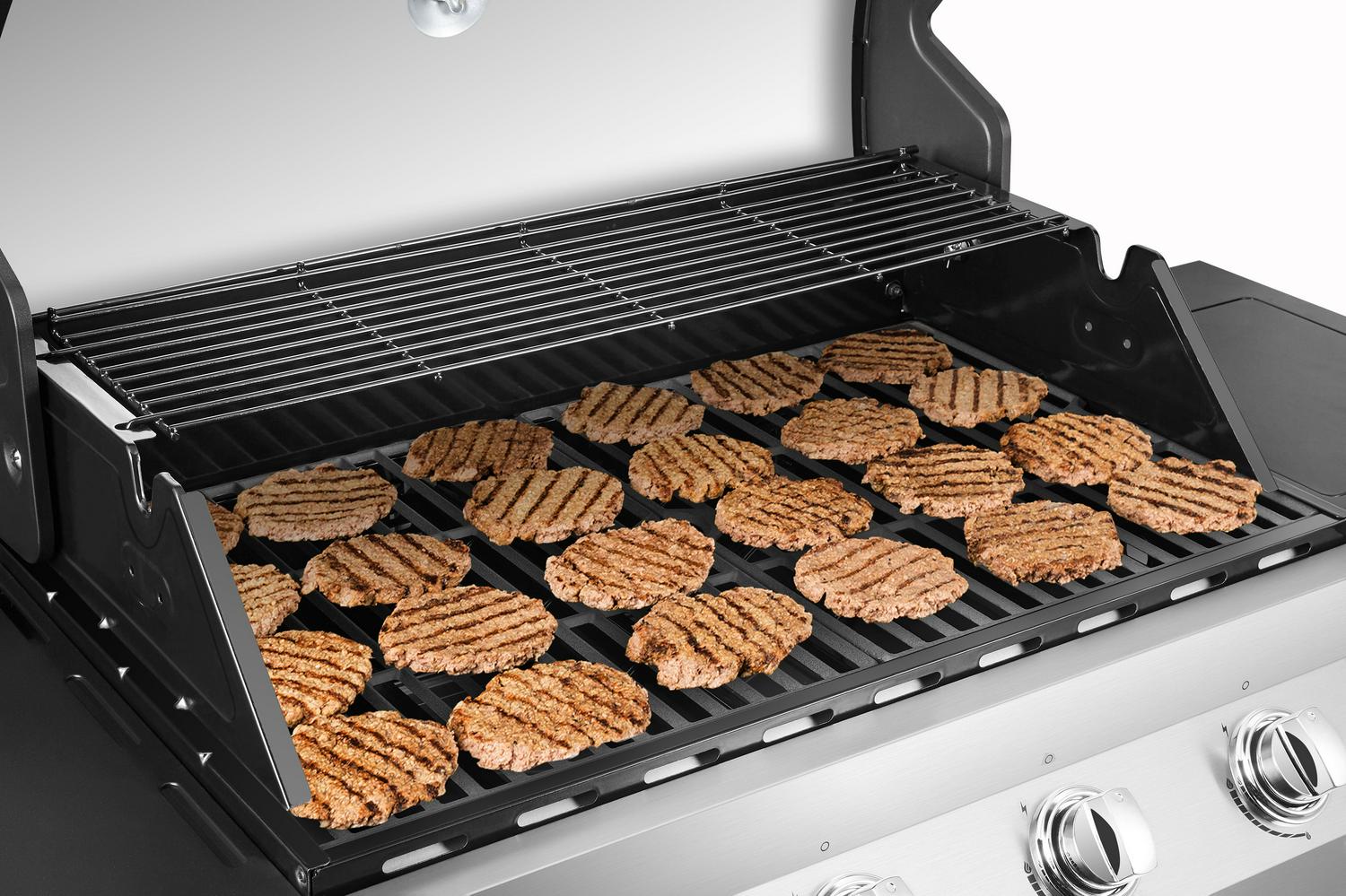 – Cast iron cooking grates provide the ideal surface for retaining and transferring heat directly to food