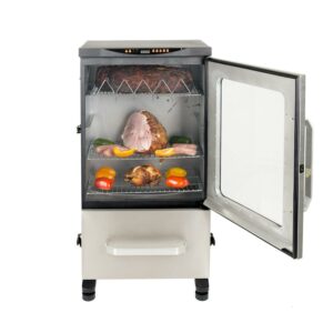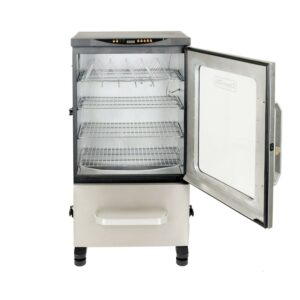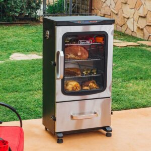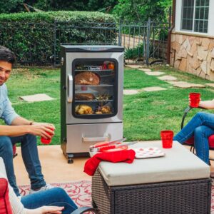Bring the classic art of barbecue into the future with the 40″ 2-Door Digital Electric Smoker from Dyna-Glo. Digitally set and monitor your cook time and temperature with the push of a button. With the digitally-controlled, integrated meat thermometer, you can keep an eye on the food s internal temperature without opening the door, and relax knowing the smoker will turn off when the meat reaches your desired temperature. Designed for easy access and a simplified process, this smoker will have you serving up ribs, sausages and more in no time.