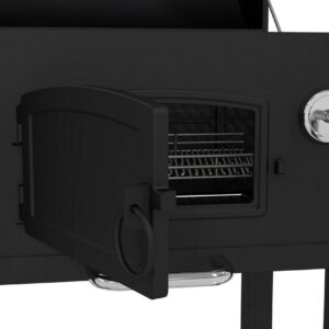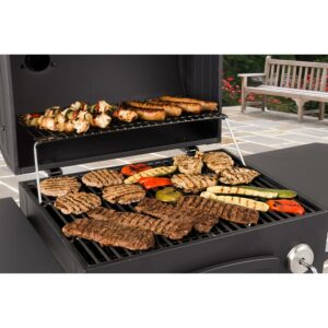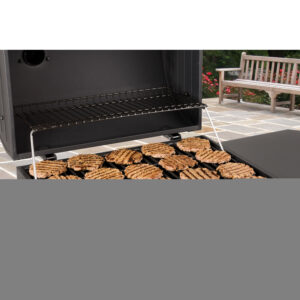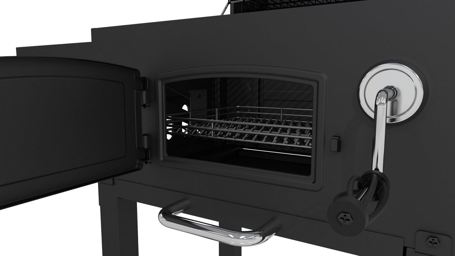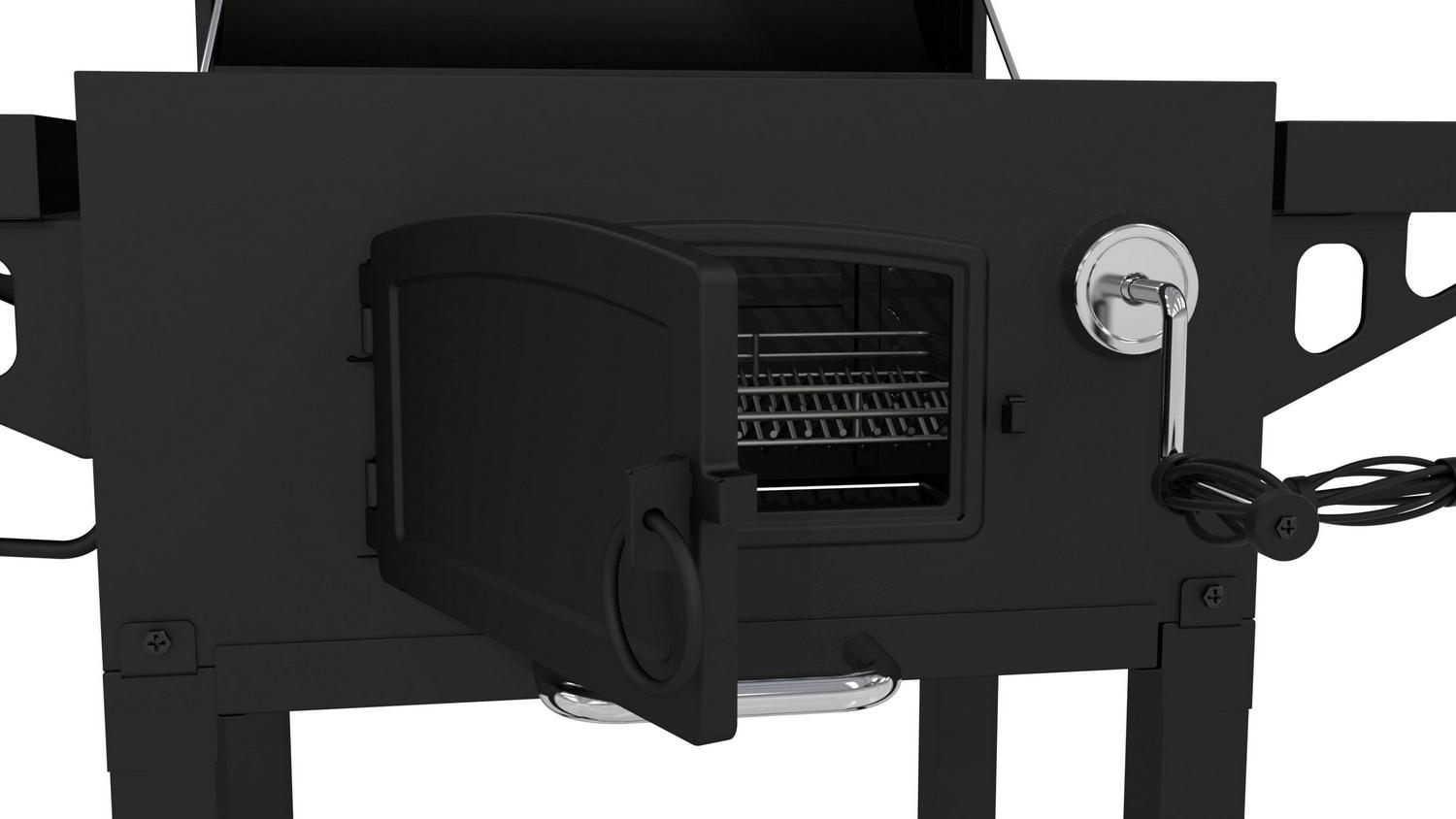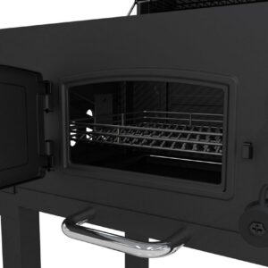 Anytime is the right time to cook on this heavy-duty charcoal grill from Dyna-Glo. Each cooking grate is made with porcelain enameled cast iron for maximum heat transfer and searing. Customize the cooking temperature by using the adjustment crank to raise and lower the charcoal tray. Reloading or stoking charcoal is made simple by opening the steel access door on the front of the grill. The smoke stack features an adjustable flue for additional temperature control. The high capacity ash pan is removable for quick and easy clean-up.