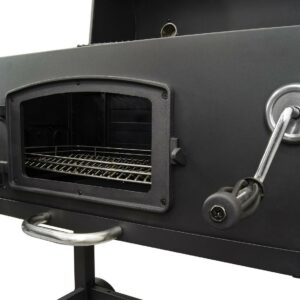 Cooking with charcoal is now stylish and functional with this stainless Dyna-Glo charcoal grill. Each cooking grate is made with porcelain enameled cast iron for maximum heat transfer and searing. Customize the cooking temperature by using the adjustment crank to raise and lower the charcoal tray. Reloading or stoking charcoal is made simple by opening the cast iron and steel access door on the front of the grill. The stainless smoke stack features an adjustable flue for additional temperature control. The lid and front firebox are double-walled to minimize heat loss and improve the burn efficiency of charcoal. The high capacity ash pan is removable for quick and easy clean-up.