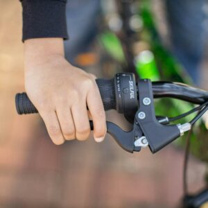 – 6-speed Shimano derailleur with grip shifter