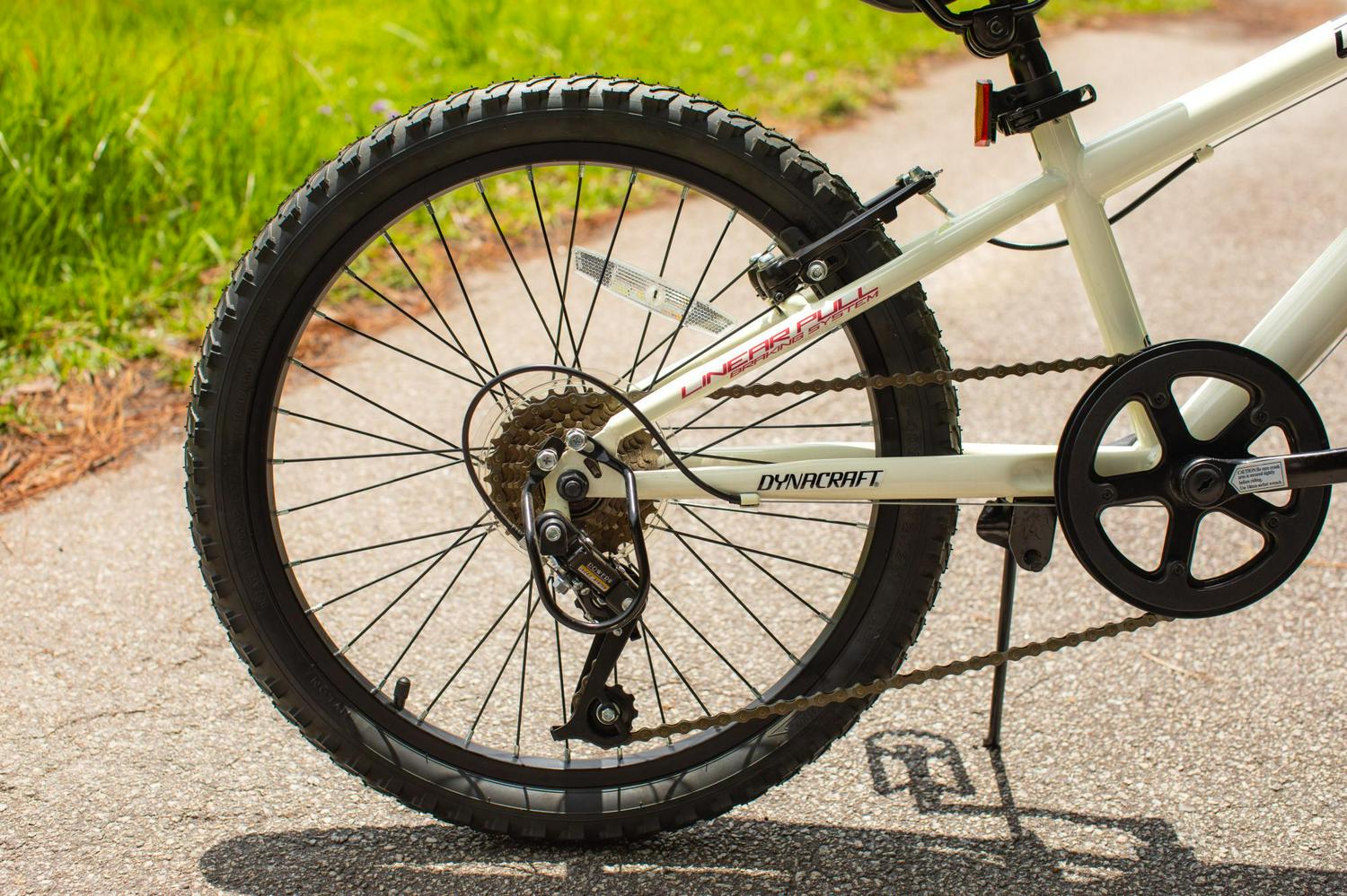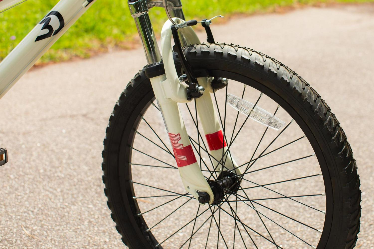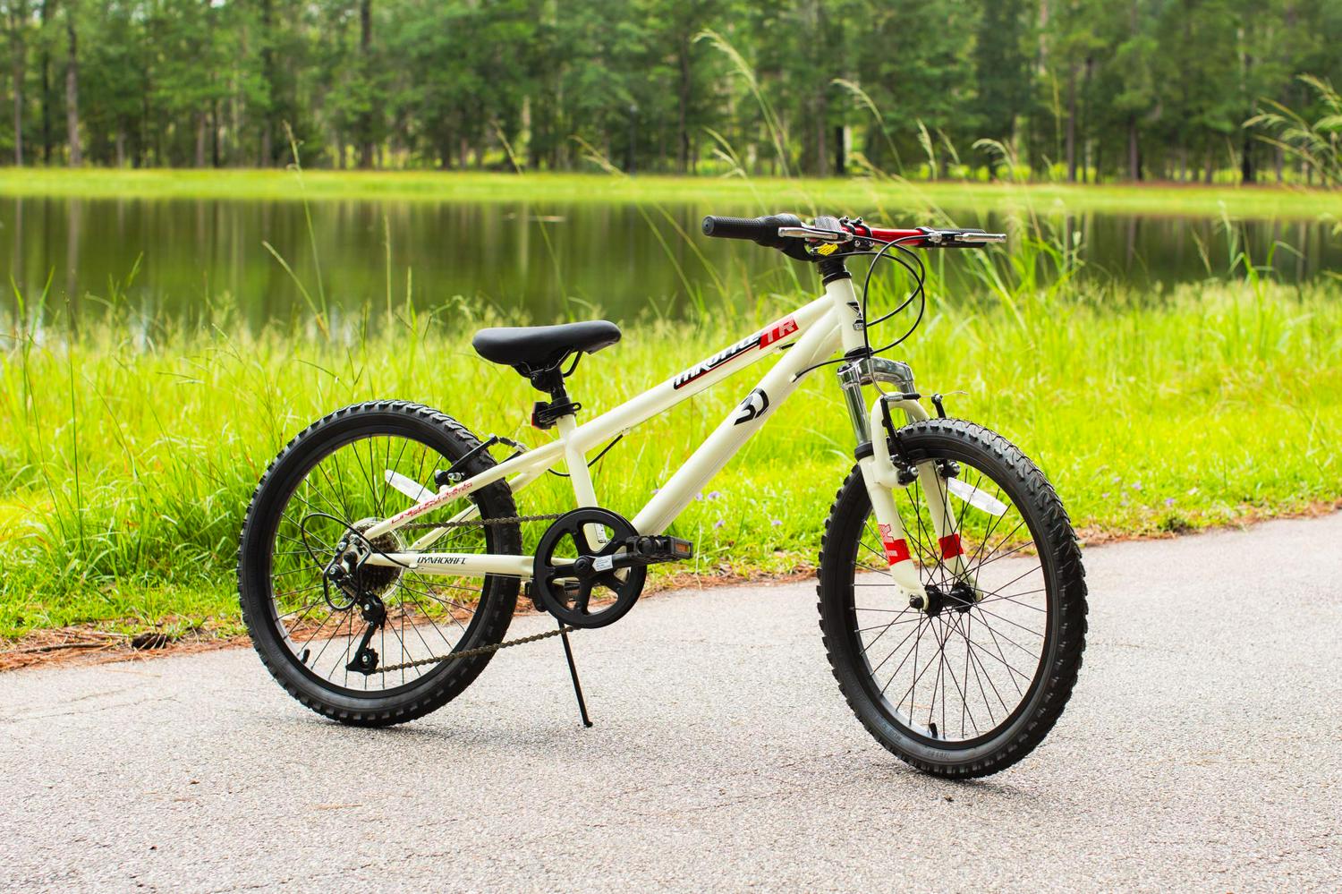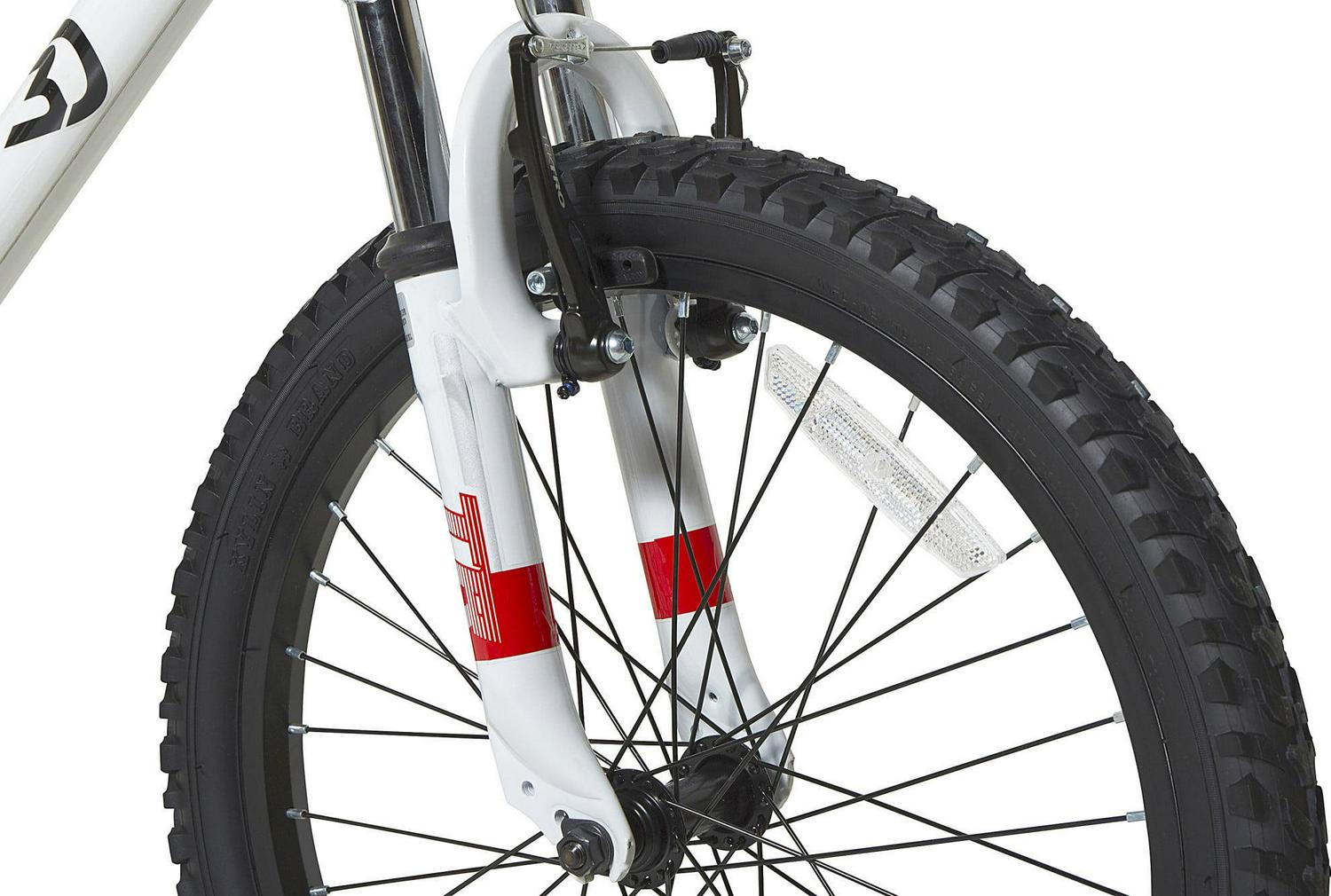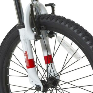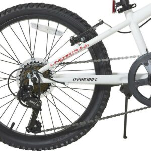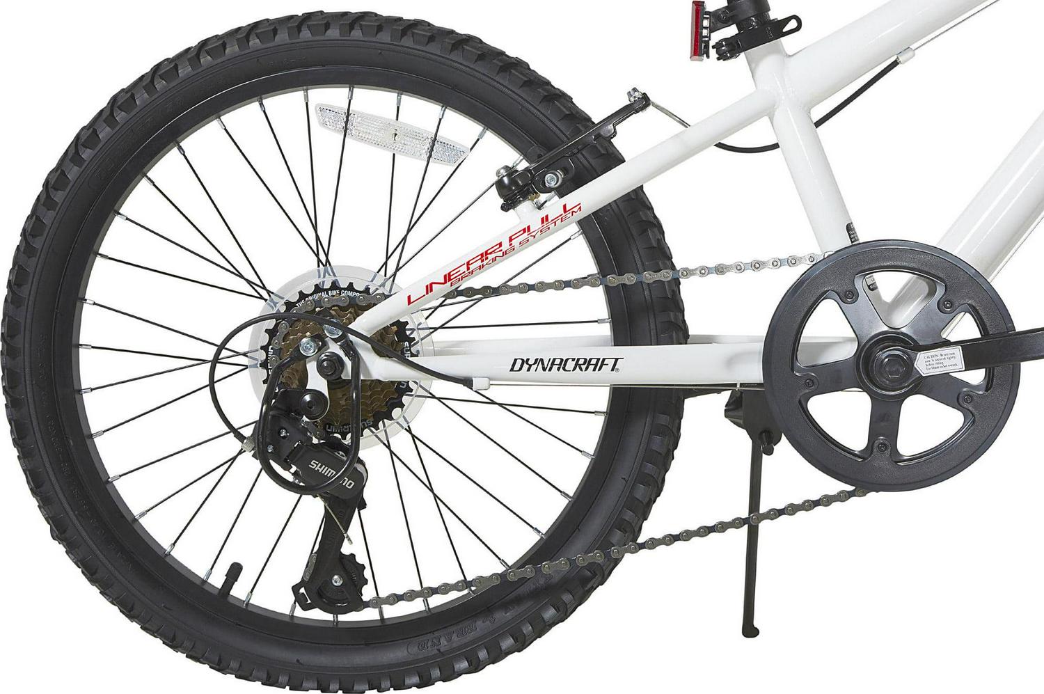 Get ready for an exciting and thrilling ride on the 20-inch Throttle Youth Mountain Bike by Dynacraft. With a white frame and red accents, this bike not only looks stylish but also offers a streamlined experience. Designed for advanced riders, it comes with 7-speeds that allow you to ride fast and furious. The front and rear linear-pull brakes are easy to use and ensure a smooth and safe stop. To keep you visible and secure, the bike is equipped with a reflector on the front handlebars and spokes. Gear up for an adventurous ride!