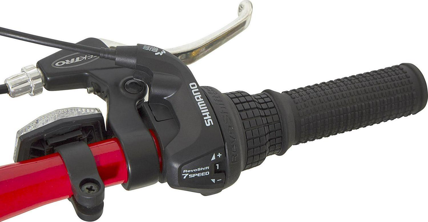- Seven-Speed Shimano Derailleur with Grip Shifters