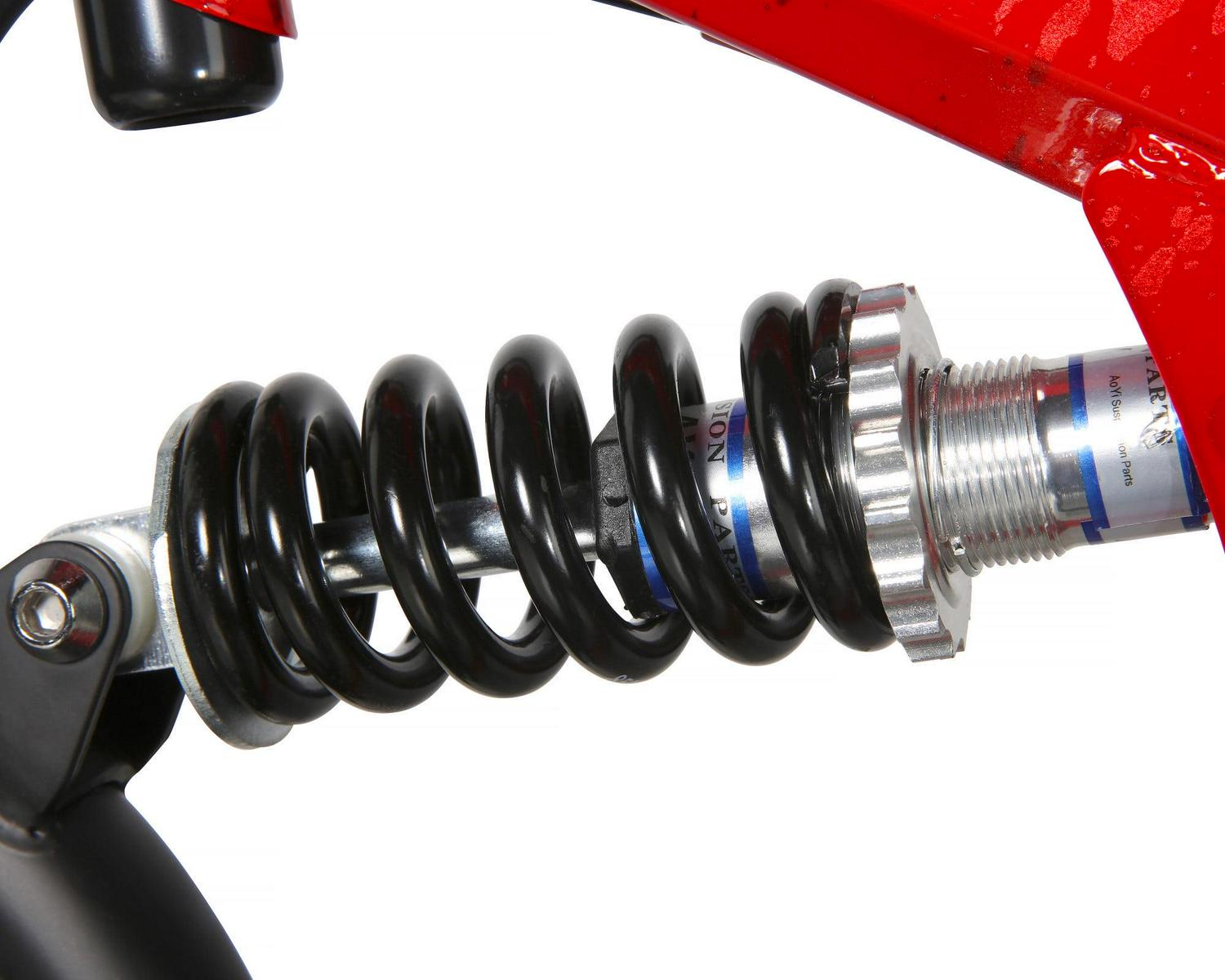 – The sturdy dual-suspension steel frame offers stability and a comfortable ride.