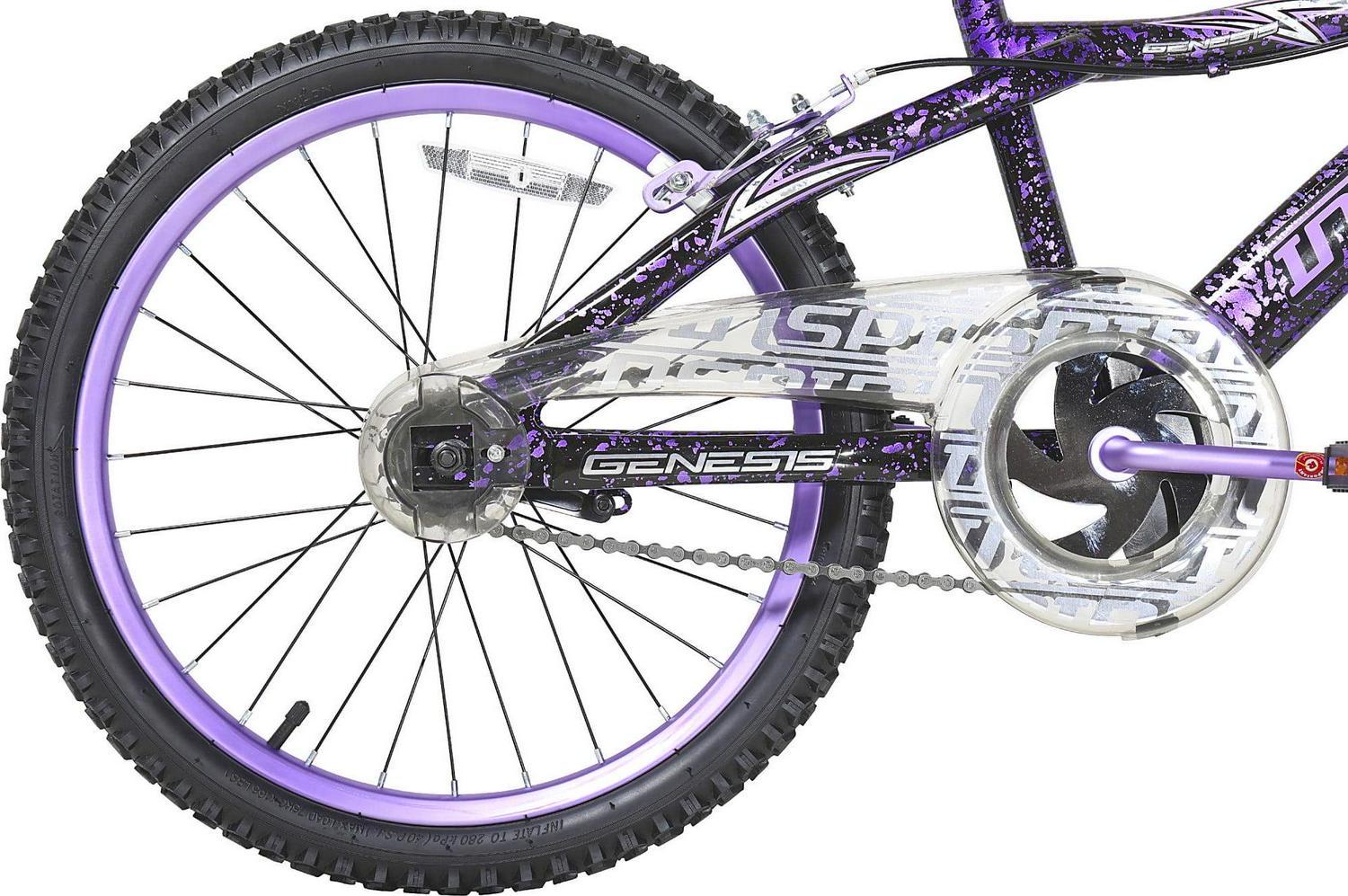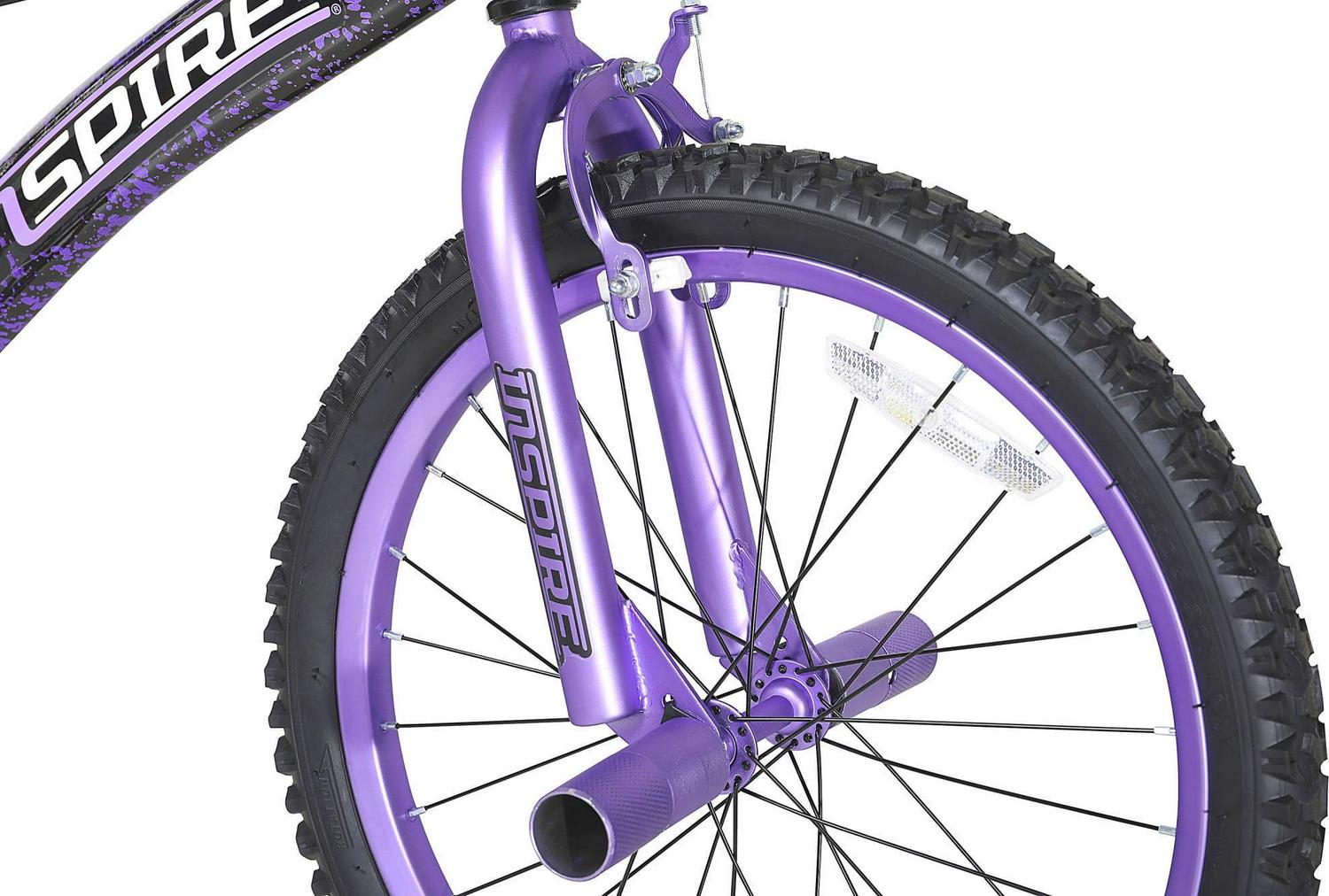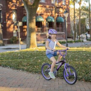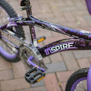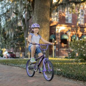 – Motivating Design: The Dynacraft Inspire 20-inch Girl’s bike is designed to inspire and motivate her for exciting adventures, featuring a sleek purple and matte black frame with vibrant purple, silver, and white details.