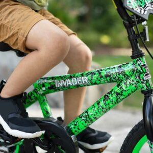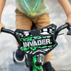 – Unique Design: The Dynacraft 16-inch Invader bike boasts a striking green and black deluxe dipped paint finish, Invader handlebar shield, and attention-grabbing Invader branded decals that appeal to young male riders.