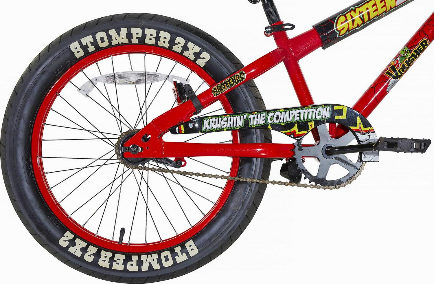 Picture your young adventurer crushing the dirt beneath him on the Dynacraft Krusher Sixteen20 20-inch Boys Bike. With its BMX-style design, this bike sports a striking red and black high gloss paint finish with custom graphics on the top tube pad, fork, and chain guard. Whether he’s exploring the beach, cruising around the neighborhood, or hitting dirt paths, the Krusher will stand out on every ride. The extra-wide 2×2 wheels, sturdy steel frame, and easy-to-control coaster brake ensure a smooth and comfortable ride across multiple terrains. Plus, an adjustable seat post allows the bike to grow with your child. Perfect for male riders aged 6-10 years who love to explore the world around them, the Dynacraft Krusher Sixteen20 20-inch Boys Bike is the ultimate outdoor companion.