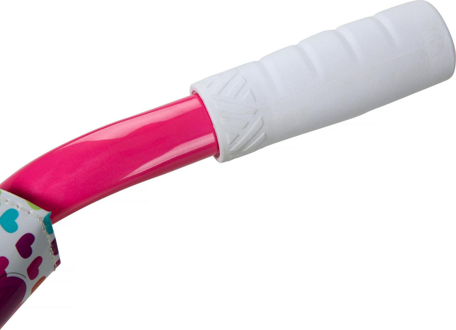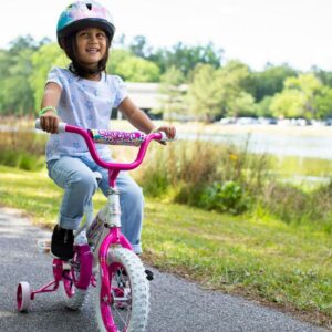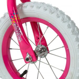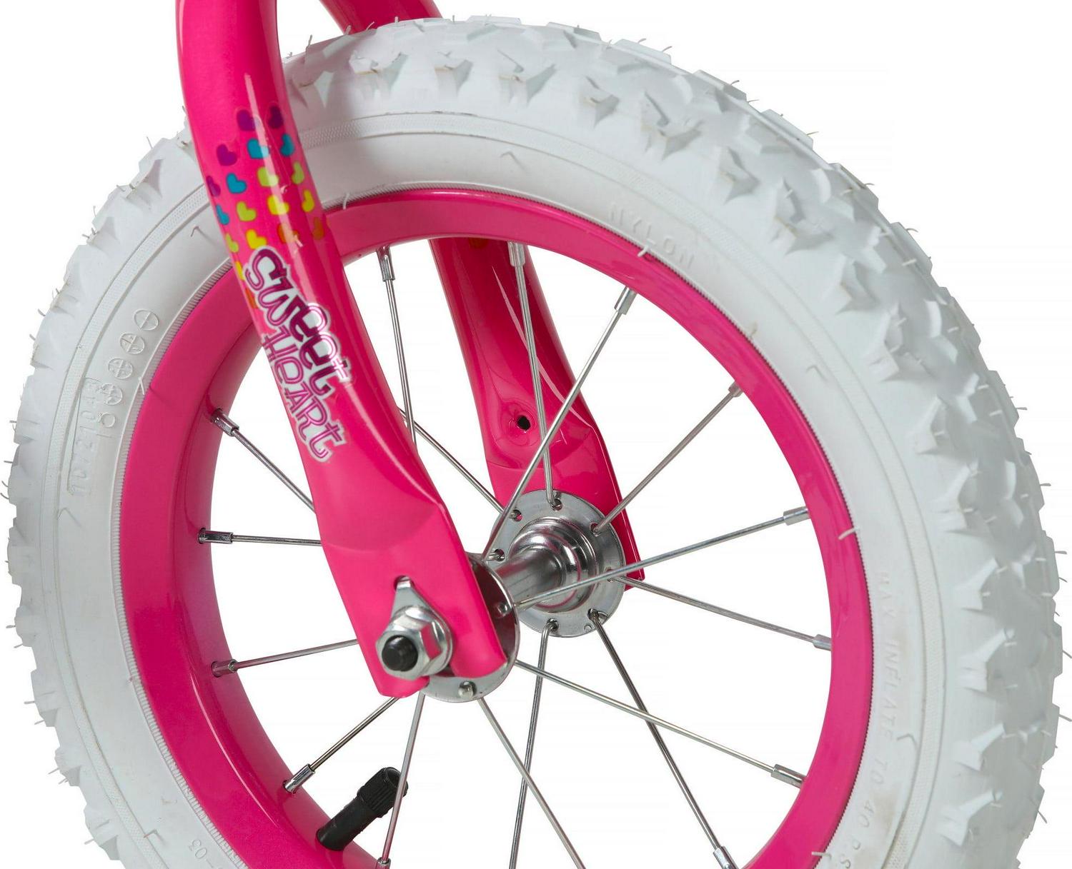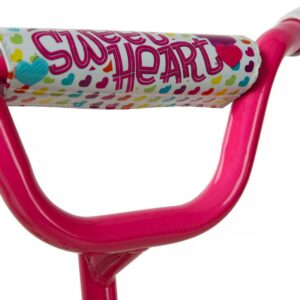 Your little princess will surely stand out amongst the crowd with this 12-inch Sweetheart Girl s Bike by Dynacraft. With its vibrant pink color and heart design, this BMX-style bicycle is sure to catch the eye of any girl who sees it. Equipped with pink and white training wheels, easy-to-use coaster brakes, and comfort grips, you can ensure a fun and secure ride for your little one.
