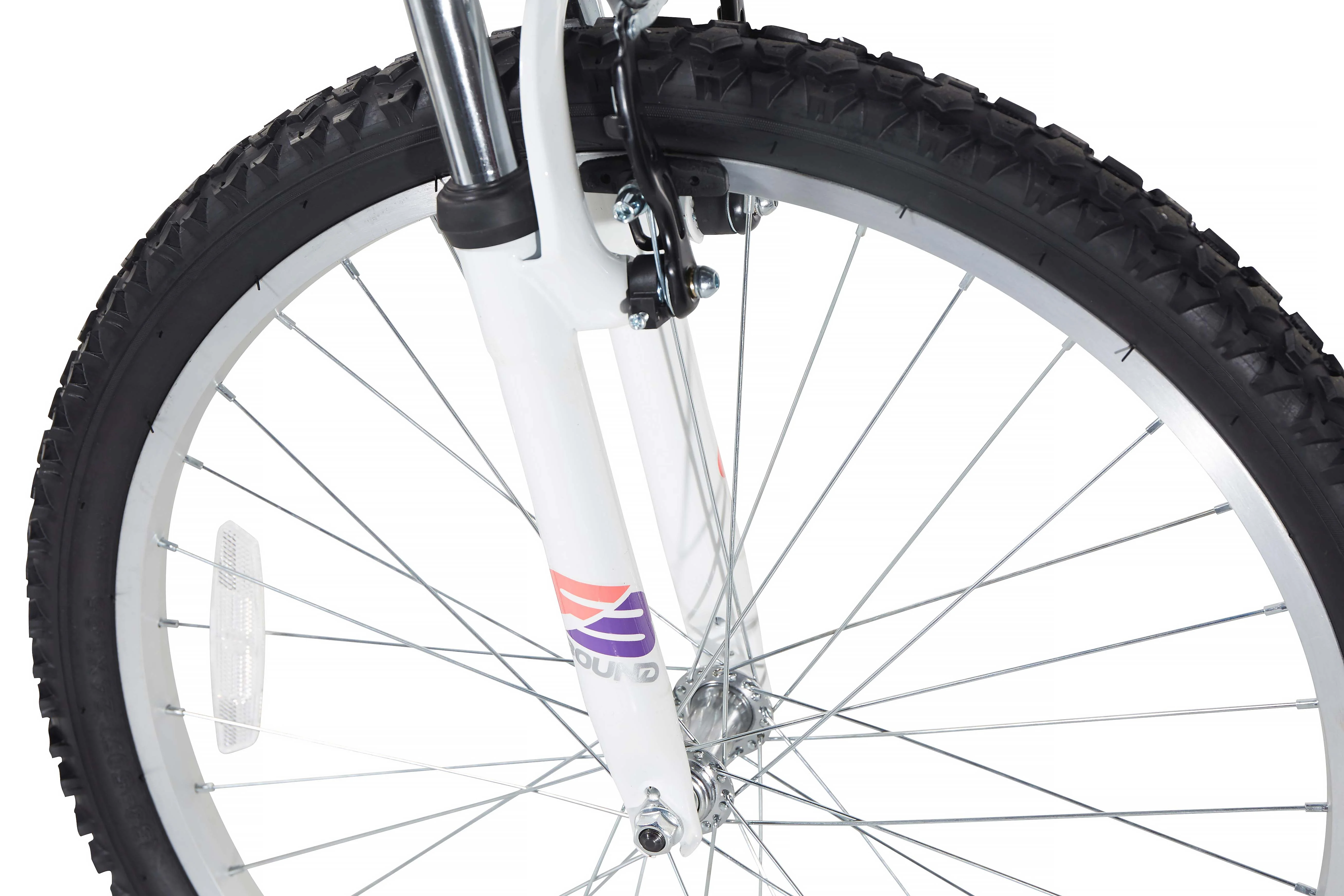 Looking for a sleek bike that’s perfect for adventure? Look no further than the 24-inch Magna Echo Ridge Bike by Dynacraft. With a solid steel frame and deluxe purple paint finish, this bike is as stylish as it is strong. Custom graphics with pink, silver, and white accents add a touch of personality to the design. Plus, the front shock makes for a smooth ride, while the front and rear linear-pull brakes ensure that stopping is a breeze. With 18-speed index shifter gears, climbing is more fun than ever before. And thanks to the super padded seat with quick-adjust seat post clamp, this bike is not only safe, but also comfortable and easy to set up. Get ready for adventure with the 24-inch Magna Echo Ridge bike and experience fun on wheels like never before!