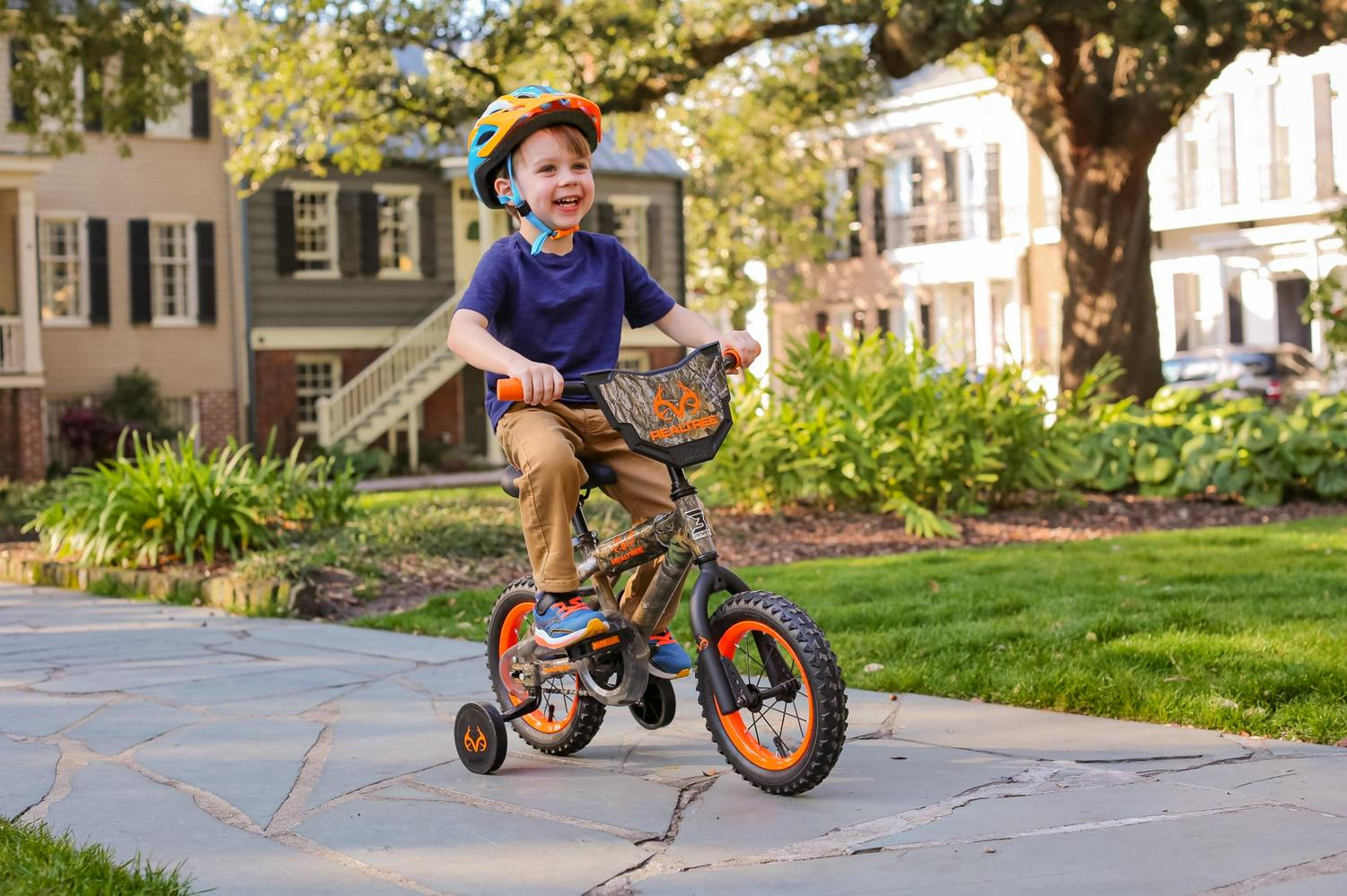 Take on the great outdoors with the rugged Realtree 12-inch Boys Bike by Dynacraft. With the unique camouflage paint finish and Realtree handlebar shield, your little one will love exploring the neighborhood. Equipped with removable, adjustable training wheels for rider comfort as they progress, this ride gives your child extra support as they learn to ride. An adjustable seat post also allows the bike to grow with your young rider, and with the bike’s rear coaster brake, riders can achieve maximum stopping control. When the wild calls, answer it on the Realtree 12-inch Boys Bike.