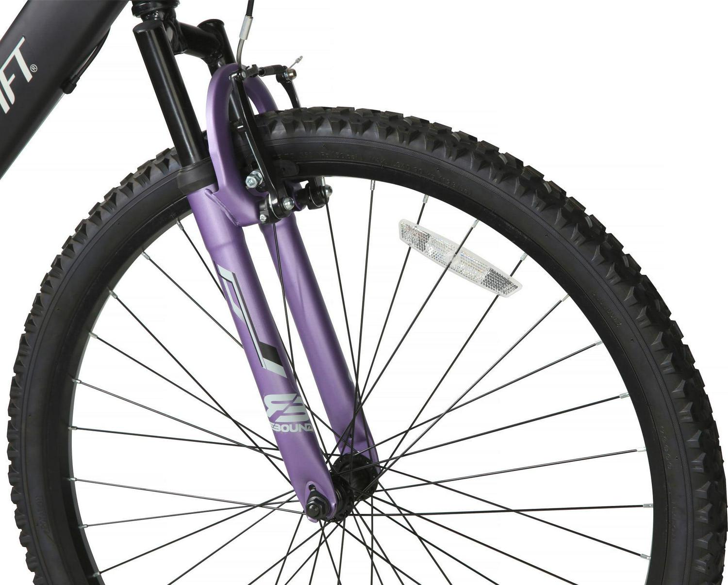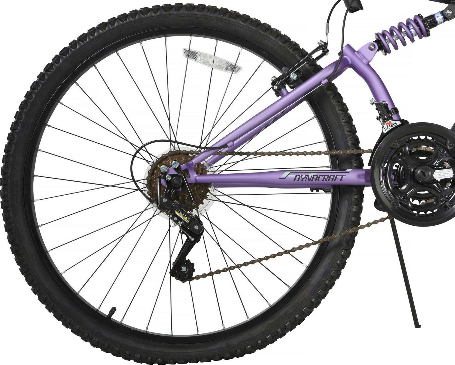 Our Dynacraft Silver Canyon 26-inch bike is the perfect set of wheels for the rider who wants to get off the beaten track! This rugged ride includes a full suspension frame guaranteed to eat up the bumps. While the grey deluxe paint finish with matte black, white, and orange details is sure to catch the eye. Featuring a 21-speed index derailleur with grip shifters, this bike will make any incline seem flat, while front and rear v-brakes make descending easy with safe and solid stops. The quick-release seat post allows for super quick set-up and adjustment. The padded saddle provides a super comfortable ride and the solid steel kickstand makes resting the bike a cinch. Riders will enjoy hours of fun out on the trail or wherever their adventures take them on the Dynacraft Silver Canyon 26-inch bike.