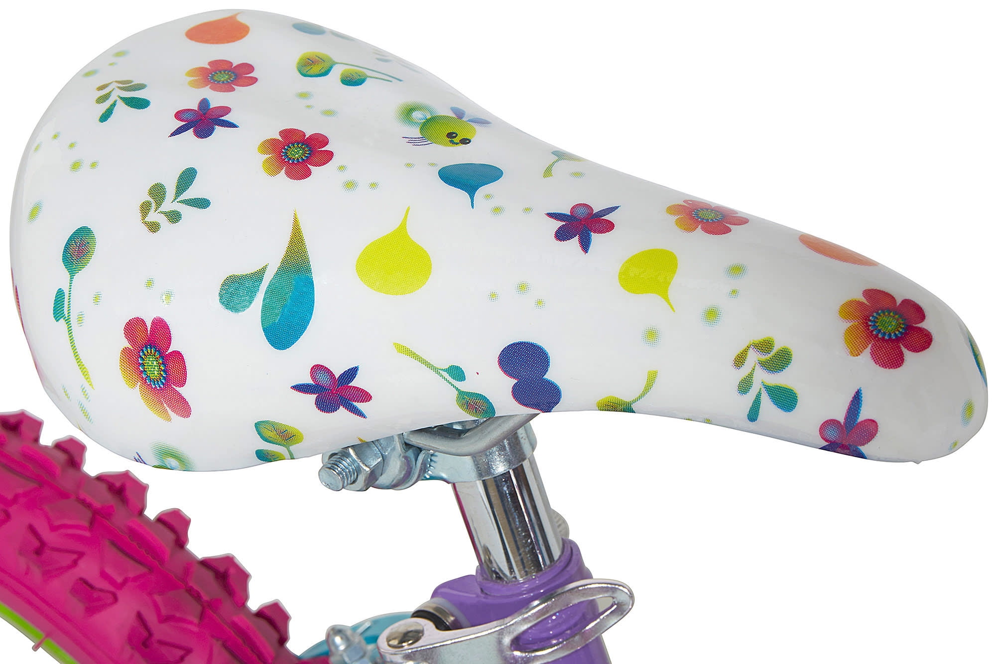 Looking for a bike that will make your little girl feel free and empowered? Look no further than the Girl’s 16-inch DreamWorks Trolls bike by Dynacraft! With a sturdy steel and purple “chrome” frame adorned with vibrant “Powered in Positivity” graphics featuring the beloved Trolls characters and a colorful design, this bike is sure to charm any little girl. Plus, the padded seat is comfortable and height-adjustable, and the front-hand brake provides smooth stopping power. With wide training wheels for added stability, this bike is the perfect choice for your little one’s outdoor adventures.