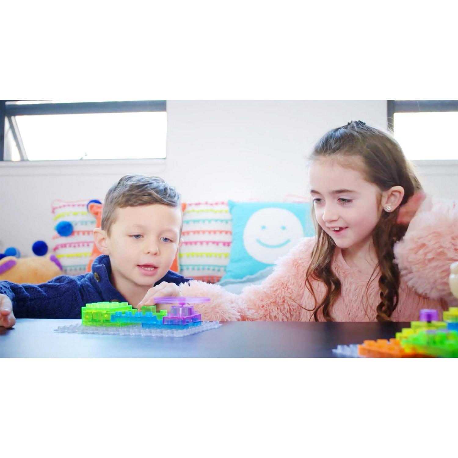 Patented Technology you won t find in any other toy brick set. No wires! Build circuits directly into your projects. Stimulate young minds with creativity, imagination and science. Light up your 3D circuits with our unique power blocks-Contains over 130 patented parts, including fifty (50) LEDs.