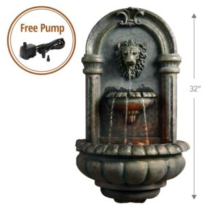 Add old-world charm to your lawn with the elegant Teamson Home Outdoor Tiered Lion Head Stone Wall Fountain with LED Light. This decorative wall fountain provides a tranquil and soothing addition to your porch, patio, or backyard. Featuring a timeless design with a natural stone finish and a lion head, this wall fountain is a stylish addition to your home’s outdoor area. Constructed from durable, lightweight resin with a natural look and realistic stone texture, the fountain is weatherproof, rust-resistant, and resilient. Relax to the sounds of the soft, water as it flows out of the lion’s mouth to the tiers below. The included LED lights keep this fountain lit to illuminate your garden. For quick installation and convenient operating, the water fountain includes all necessary parts and a pump. This decorative water fountain measures 18.31″ x 9.65″ x 32.1″ to fit almost any outdoor space.