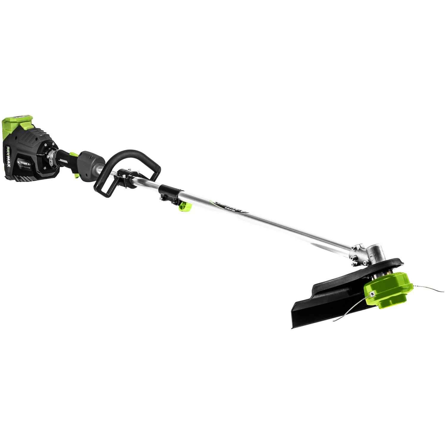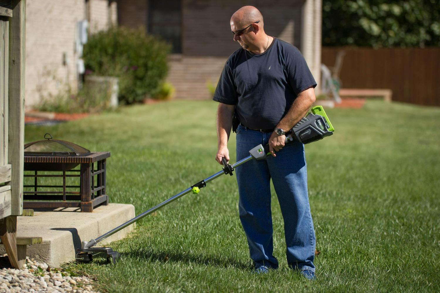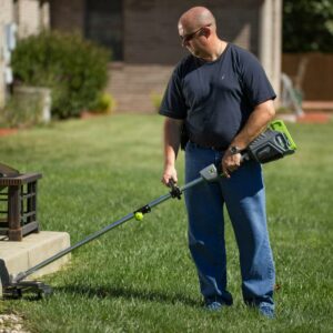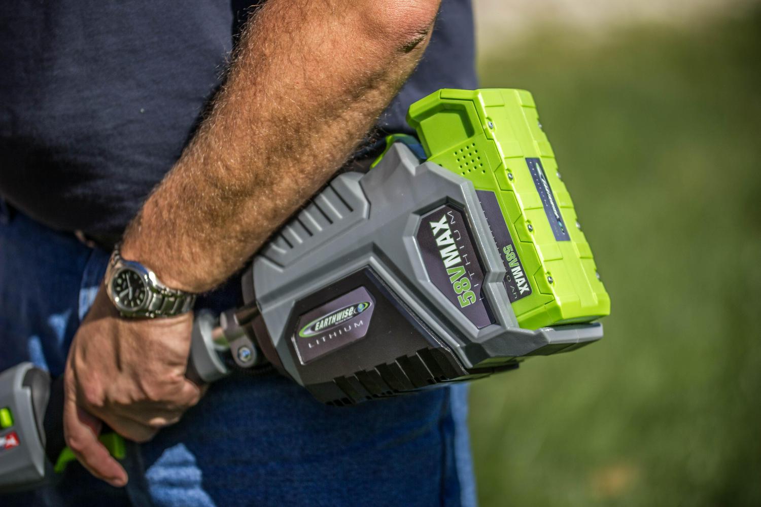 The Earthwise electric string trimmer is gas-free, rechargeable and quiet, and is designed to perform the toughest trimming jobs. The brushless motor maximizes efficiency and durability, while a variable speed trigger delivers up to 6000 rpm. A comfortable auxiliary handle offers ultimate control. No need to mess with gas and it starts with just a push of a button every time. No fumes and no cords.