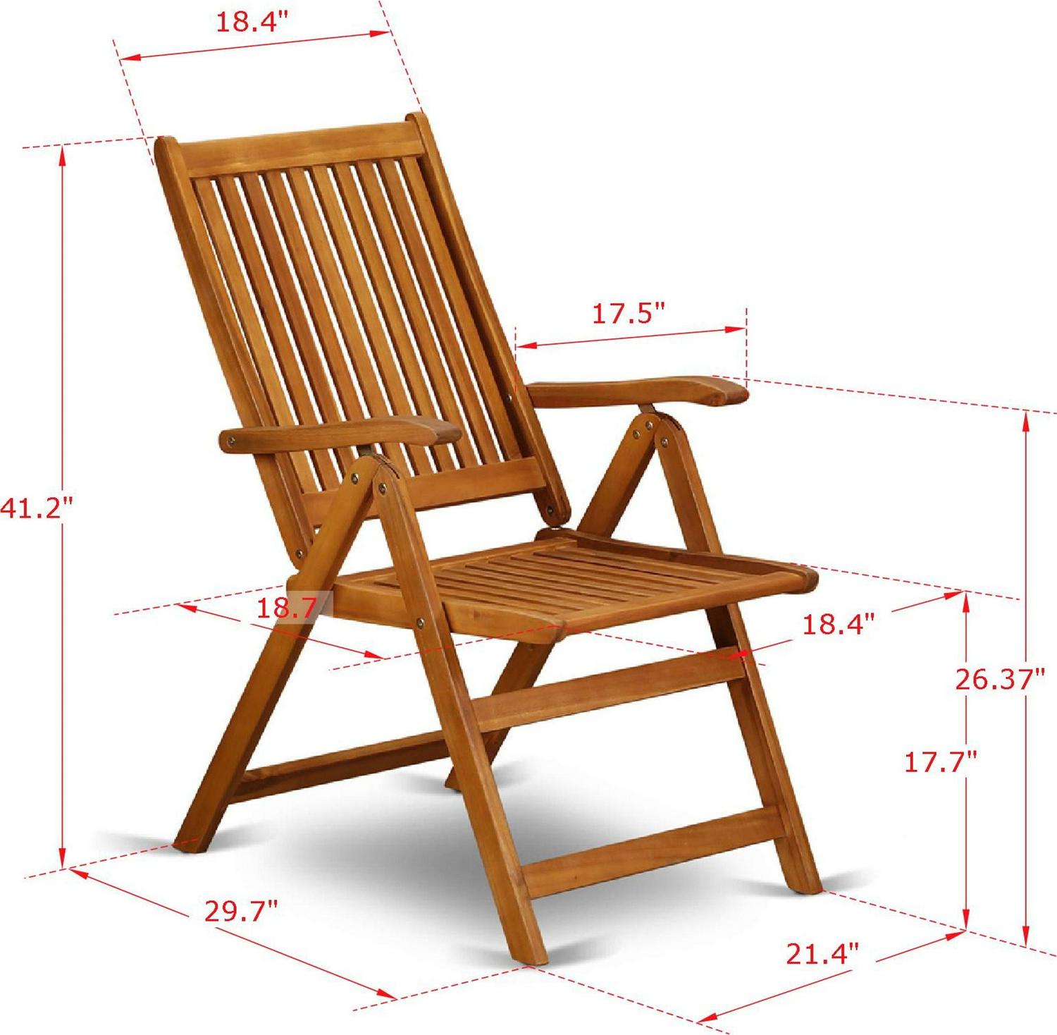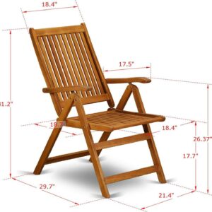 East West Furniture BCNC5NA 5 Position Outdoor-Furniture folding arm Chair made from Solid Acacia Wood – Set of 2