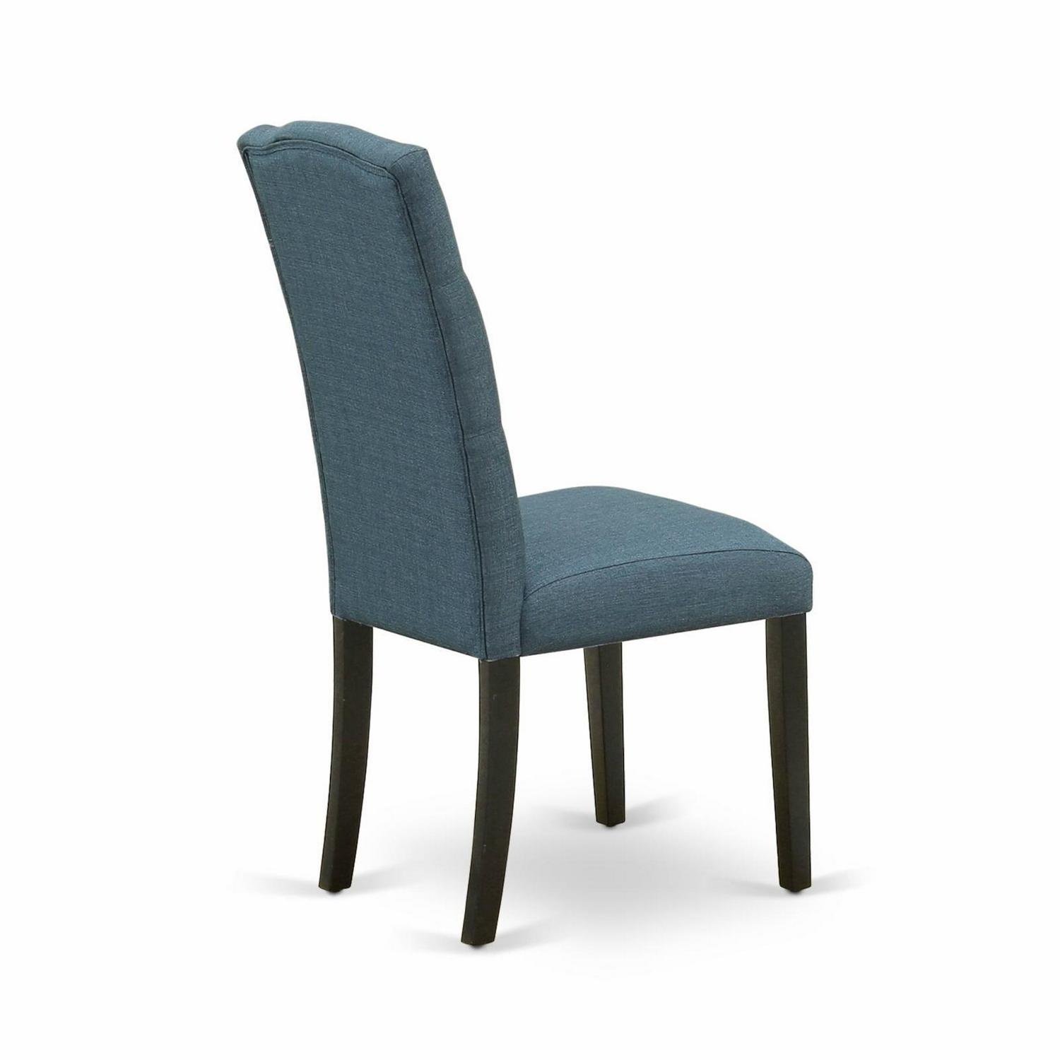 A regal and affordable parson chair offers a touch of beauty to any dining room and provides a sensible seating arrangements. The CEP1T21 upholstered parson chair features a beautiful stitched exterior. Tall back, linen fabric, high-density foam padding, solid hardwood frame construction, comfortable, durable and attractive. Whether you use this dining chair is an easy to assemble and stylish answer to your seating needs. Chair Specifications: Frame material: Asian hardwood fabric: linen fabric cushion material: foam Fabric colour: Blue leg colour: Black Dimensions: length 22; Width 18. 5; Height 41 weight capacity: 300 lbs Includes: 2 x parson chair