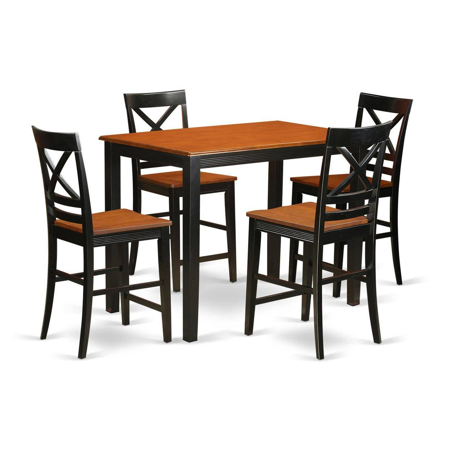 East West Furniture Counter Height Dining Pub Dining Table and 4 Room Chairs – Black Finish