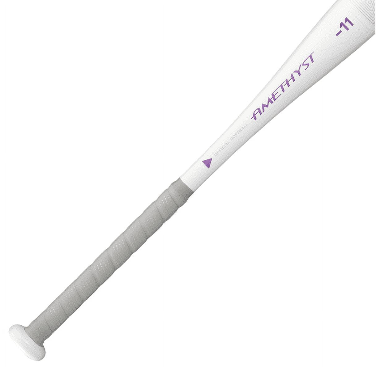Easton Amethyst Fastpitch Softball Bat – a part of the Easton Diamond Gem bat collectionALX50 military grade aluminum construction for extended durabilityUltra-thin 29/32″ handle with Pro Style Concave End CapAll-Sports Grip: Pre-applied handle helps minimize slipping and vibration for consistent plate performance29 inch barrel length-11 drop weightUSSSA Certified