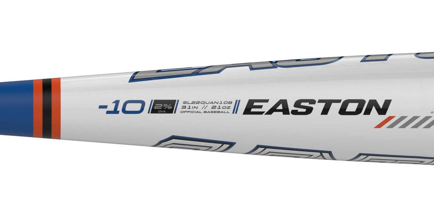 The Easton Quantum -10 is a one-piece design constructed of lightweight and durable ALX100 Performance Alloy, with a concave end cap and a cushioned Flex grip, providing additional comfort in the hands. It is approved for play in USSSA and associations that follow the 1.15BPF standard.