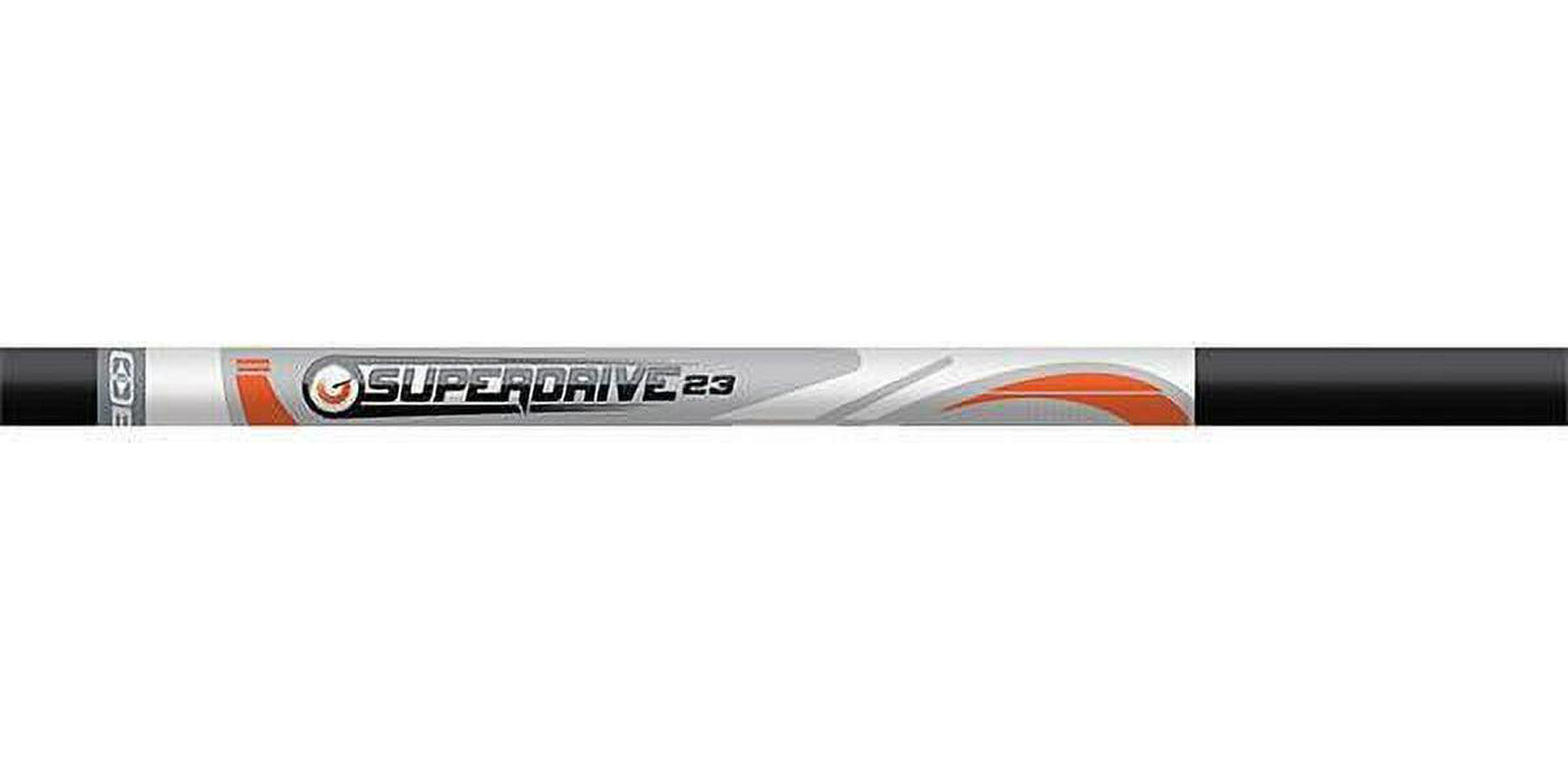 The Superdrive 23 is a high performance, light mass, high strength all carbon shaft using Easton Superdrive construction. The Superdrive 23 provides precision, speed and strength for shooters looking for a complete range of spines shooting high performance 3D and indoor competition bows. Includes nock bushings, all other components sold separately. Straightness tolerance 0.003 . Available in spine sizes 325 (7.43gpi.), 375 (6.97gpi.) and 475 (6.35gpi).