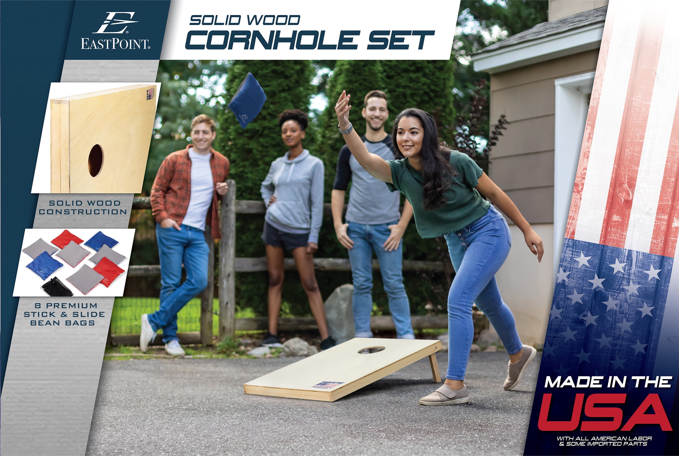 Bring the fun to your next BBQ or tailgate with the EastPoint Sports 2’x3′ Solid Wood Cornhole! The quality is top-notch! The 2 solid wood cornhole boards are the perfect set to take to the tailgate! Sturdy enough to play well, light enough to take anywhere! Great for adults or kids. Complete with 8 regulation size and weight dual-sided stick or slide bean bags, the EastPoint Sports 2′ x 3′ Natural Wood Cornhole Set is sure to be a hit!