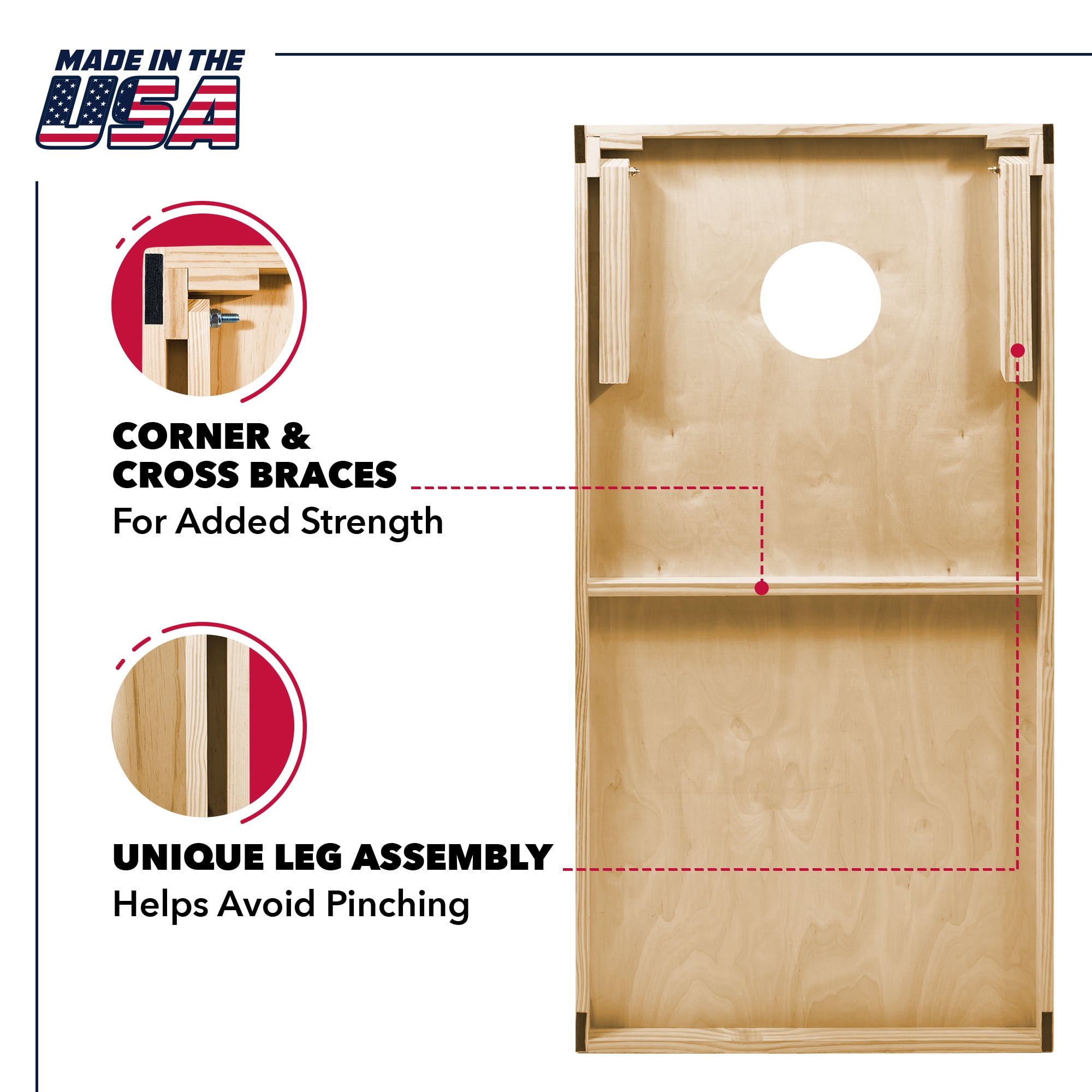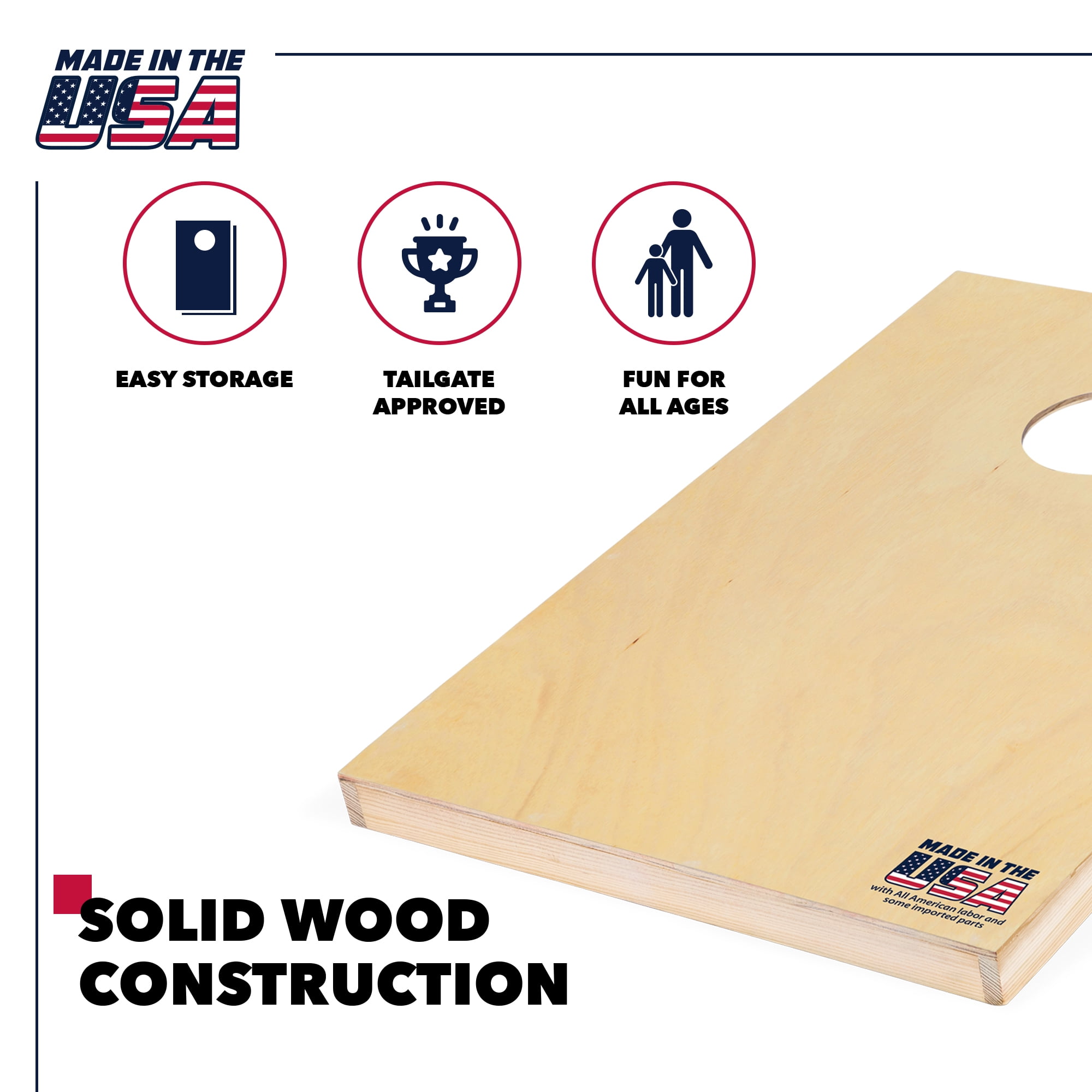 SOLID WOOD: Full set of solid wood cornhole boards EASY STORAGE: Foldable legs allow for easy storage and transportation SMOOTH NATURAL FINISH: Boards are finished with a classic clear finish, making them the perfect for sliding it in for 3 points! REGULATION BEAN BAGS: Eight 16 oz. regulation, double-stitched bean bags made with duck cloth and all-weather plastic filler – Upgraded bags to prevent busting/splitting TAILGATE APPROVED: Two 2′ x 3′ cornhole boards are just as solid and sturdy as their full-size cousins, but are smaller, lighter, and more portable – perfect for adult tailgating!