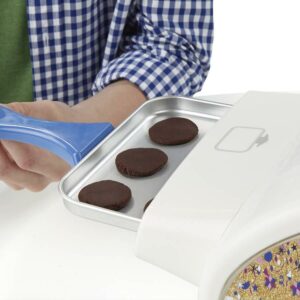 The new Easy-Bake Ultimate Oven Star Edition is a fresh, modern addition to any kitchen where kids love to bake. It lets kids feel like baking stars when they can make scrumptious treats for family and friends. This version of the Easy-Bake oven for kids is electric and no lightbulbs are needed. It also has an updated look in sleek white, with sparkly gold, pink, purple and periwinkle accents. Besides the oven itself, it includes a rectangular baking pan and a baking tool. The Easy-Bake Ultimate Oven Star Edition also includes chocolate brownie mix, vanilla frosting mix, sprinkles and instructions needed to make mini Sparkle Cakes. Sparkle Cakes are delectable frosted brownies topped with rainbow sugar sprinkles.