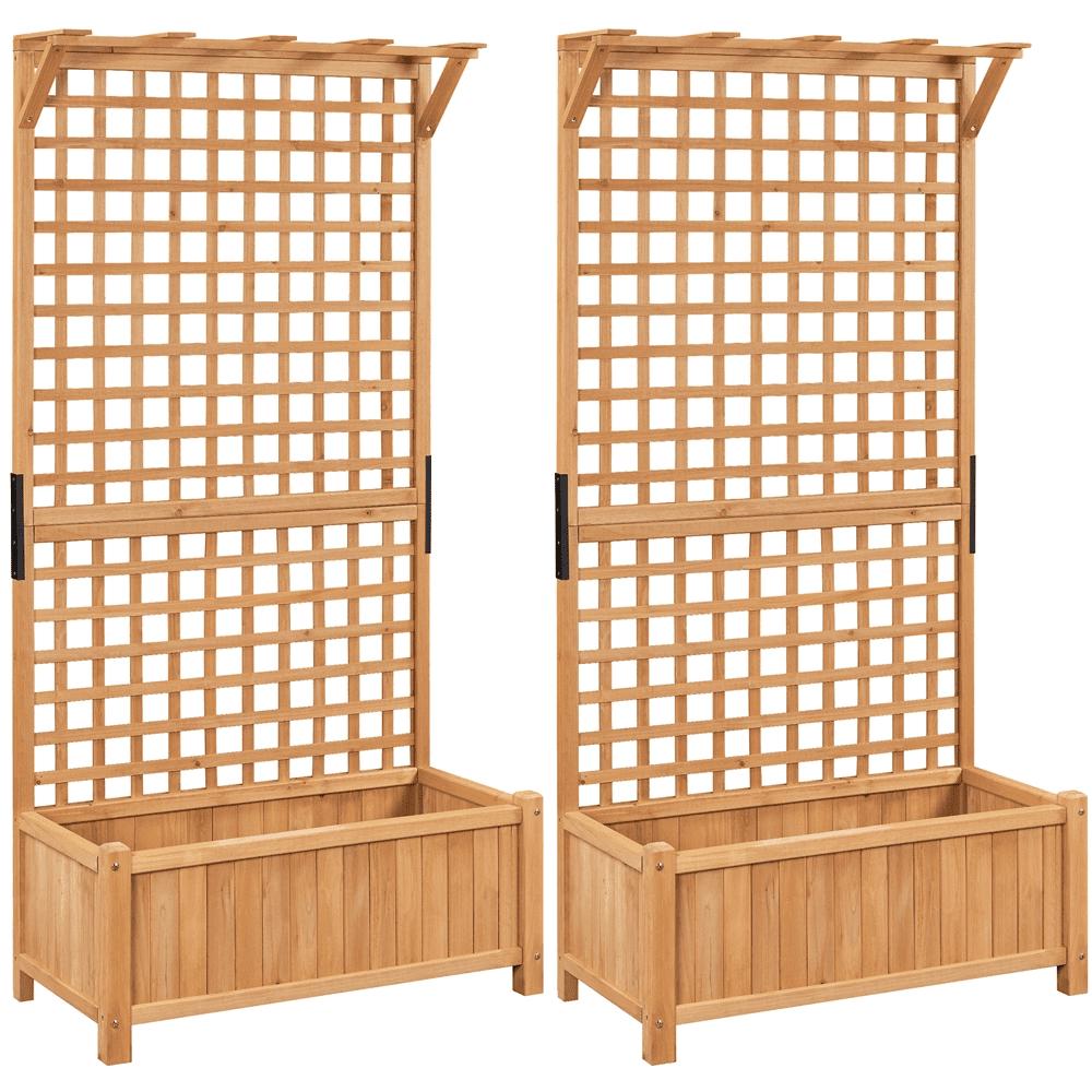 Easyfashion 2pcs 35.5a 3 L A 18a 3 W A 72a 3 H Wood Planter Raised Garden Bed with Trellis, Light Brown