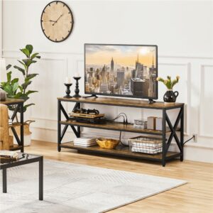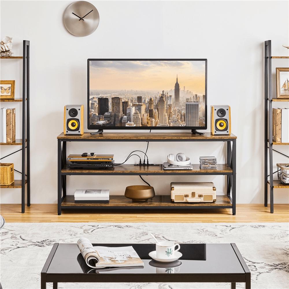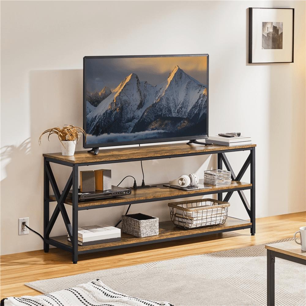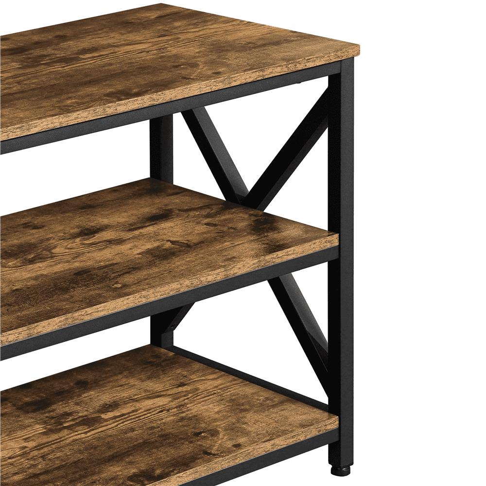 – Easyfashion 55” Industrial 3-Layer Shelved TV Stand for TVs up to 65”, Rustic Brown: