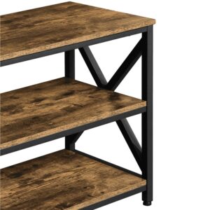 Easyfashion 55” Industrial 3-Layer Shelved TV Stand for TVs up to 65”, Rustic Brown