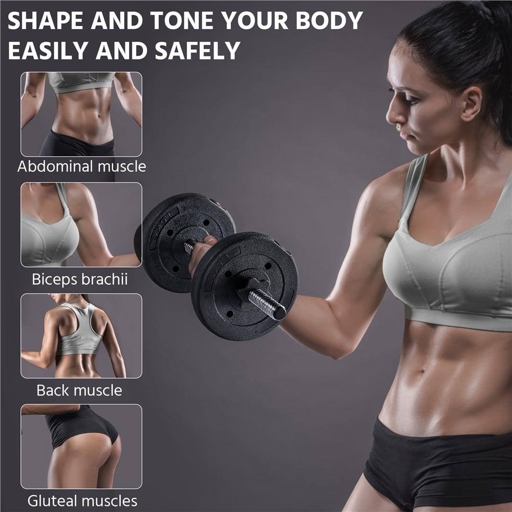 This high-quality dumbbell set is made of concrete weight plates and electroplated metal bars. It comes with different weight plates for you to adjust to your desirable dumbbell weight. This weight plate set features 2 pairs of spinlock collars and non-slip handles to provide you with a safe and secure exercise experience. It is great for your upper body workouts, which helps tone and sculpt your arms, shoulders, back and also strengthen your muscles. With this dumbbell set, you can exercise at home, in the office or any place at any time.