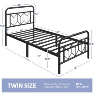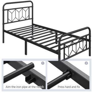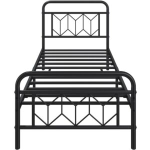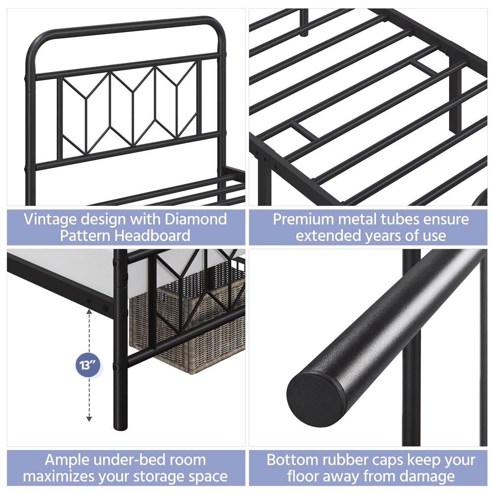– Easyfashion Vintage Metal Bed with Diamond Pattern,Twin,Black: